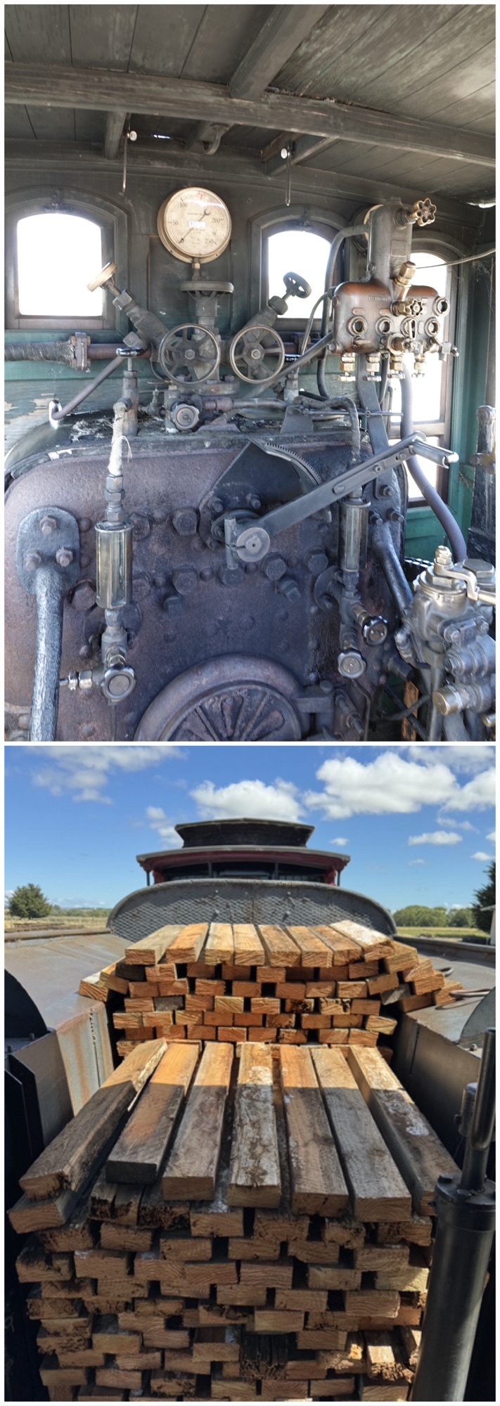 In 1926 these majestic locomotives were declared redundant/obsolete, so they were included with other “scrap” metal vehicles and farm equipment that was toppled gently off a temporary line built beside the rail/road bridge between Mossbank and Te Anau to prevent the rail line from being undercut by the adjacent glacial river. With each flood after that gravel accumulated on the metal, so that by 1985 it had disappeared under stones and mud, and willows were growing through the ruins. Fortunately the mud kept oxygen off the metal, preventing much of the rust. The braided river had also changed course by then, so permission was received to dig the Flyers out, with the newer less rare steel locomotives simply left there.