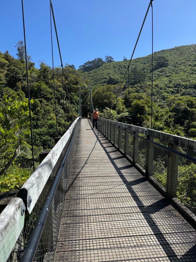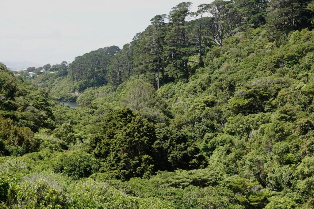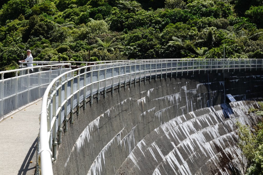 The property was originally the Wellington reservoir, built in 1904 to 1906 and decommissioned in the 1990s. The dry Upper Karori Dam still exists, and we could walk across it for some pretty incredible views of the lake and valley.
