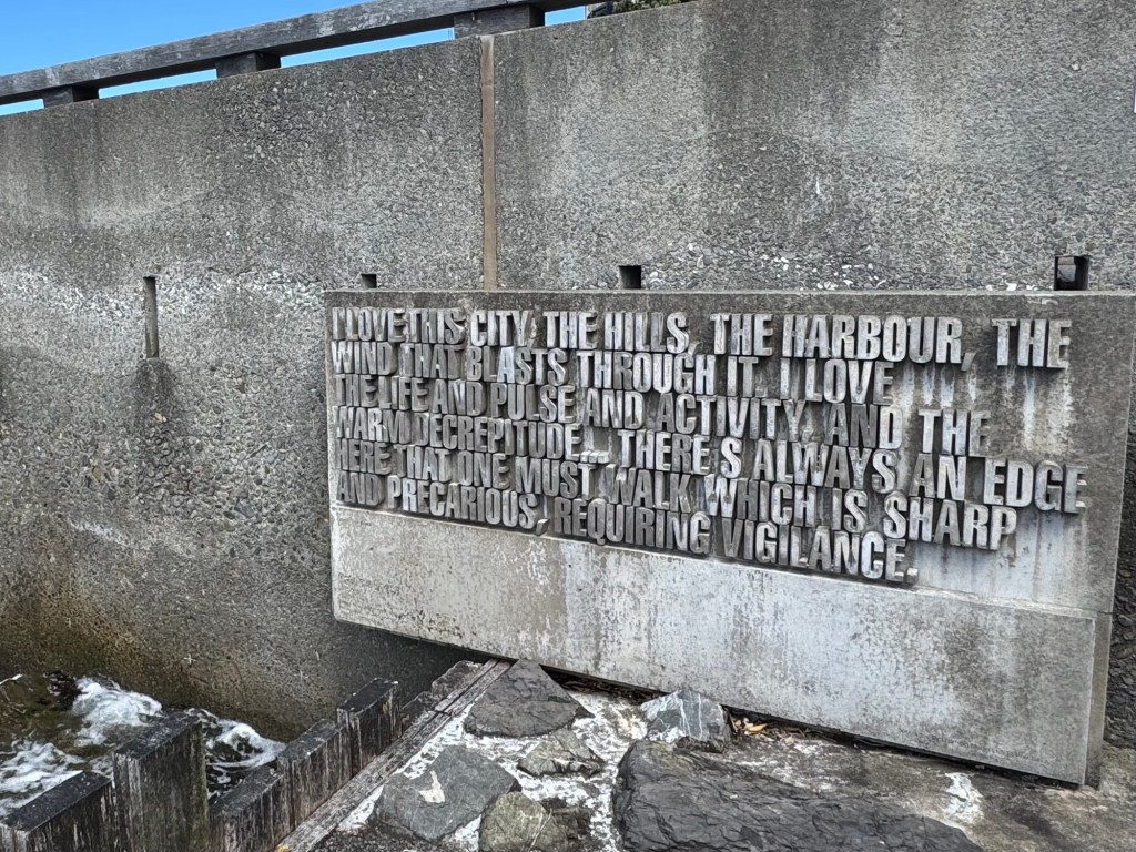 The excerpt below from New Zealand Māori writer Patricia Grace’s 1992 novel Cousins, part of Wellington Writers walk, perfectly describes the imperfection that makes Wellington so special. It is placed just below the waterfront walkway, behind the Rowing Club.