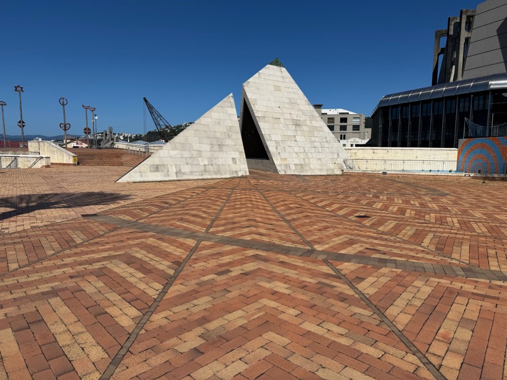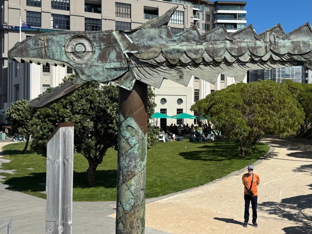 Wellington has one of the quirkiest bridges we’ve ever seen, connecting the waterfront walk to the city’s Civic Square. Even Wikipedia describes it as “Wellington’s most delightfully eccentric pieces of civic architecture — part pedestrian bridge, part sculpture garden, part 1990s fever dream. It’s a walkway, an artwork, and a cultural statement all at once.”