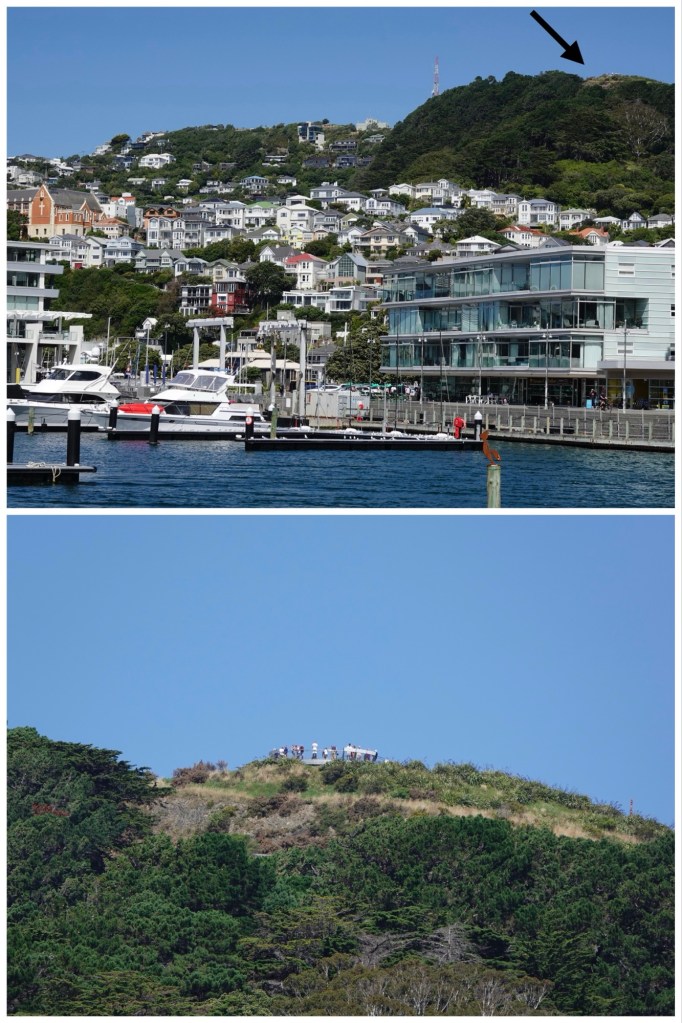 Thinking about flat walks, from the waterfront we got a good view of the lookout we climbed to yesterday.