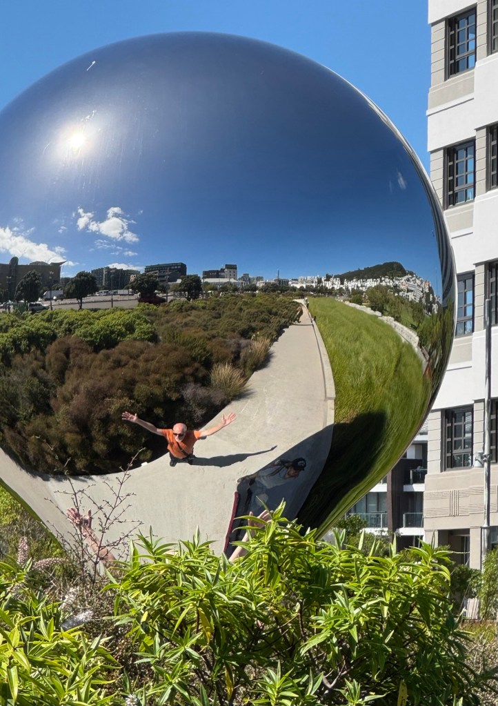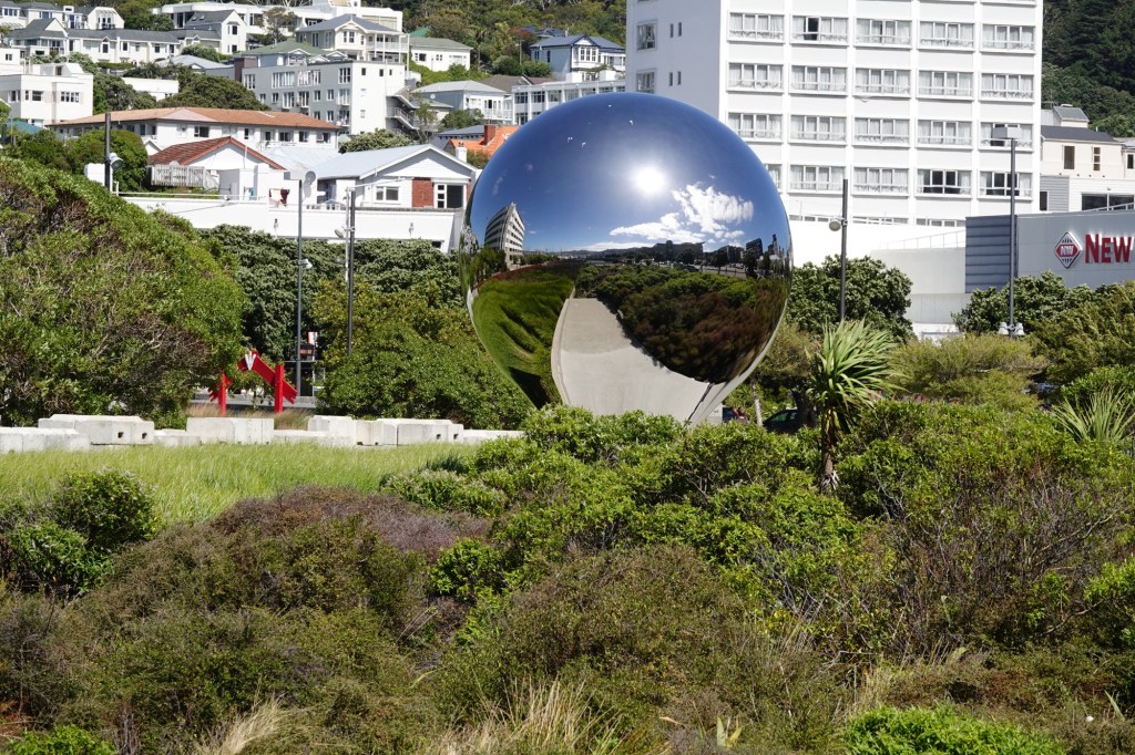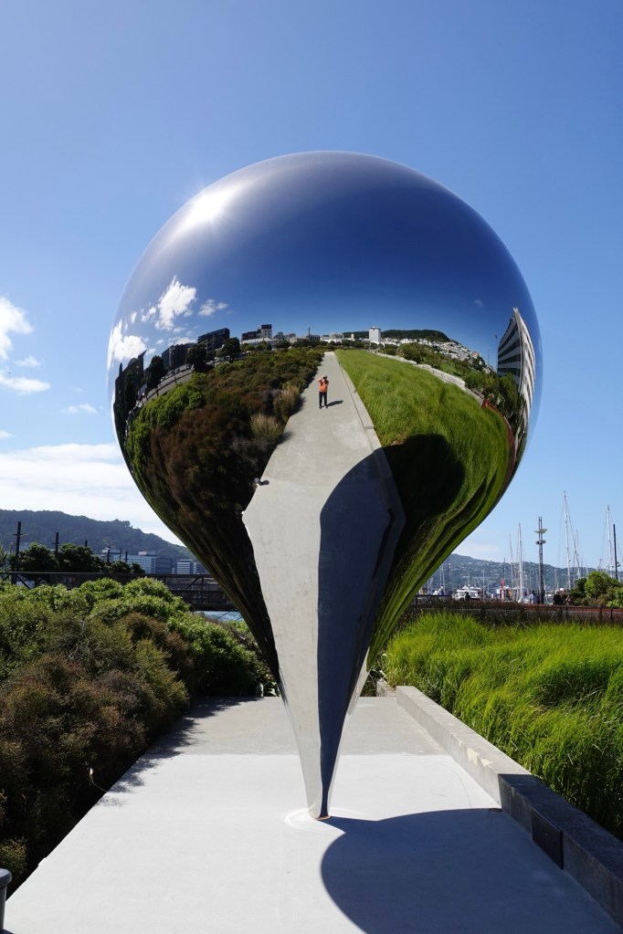 Below are some fun photos we took of KIMI / You Are Here, a large reflective sphere by Korean–New Zealand artist Seung Yul Oh.