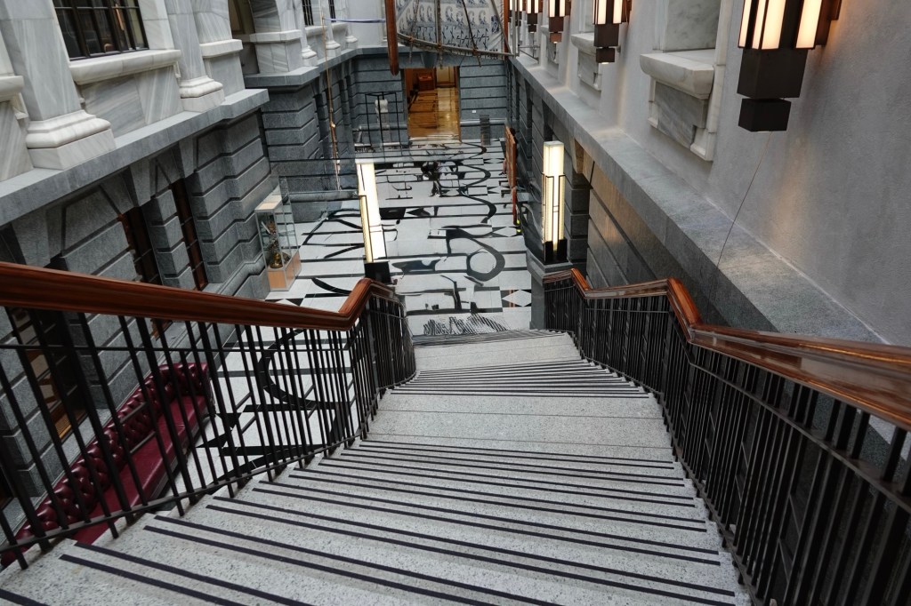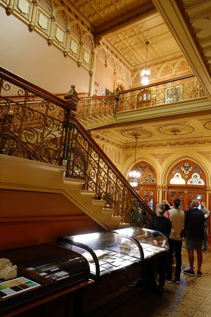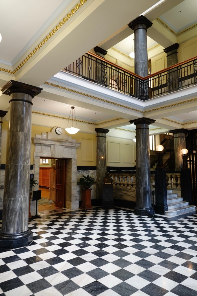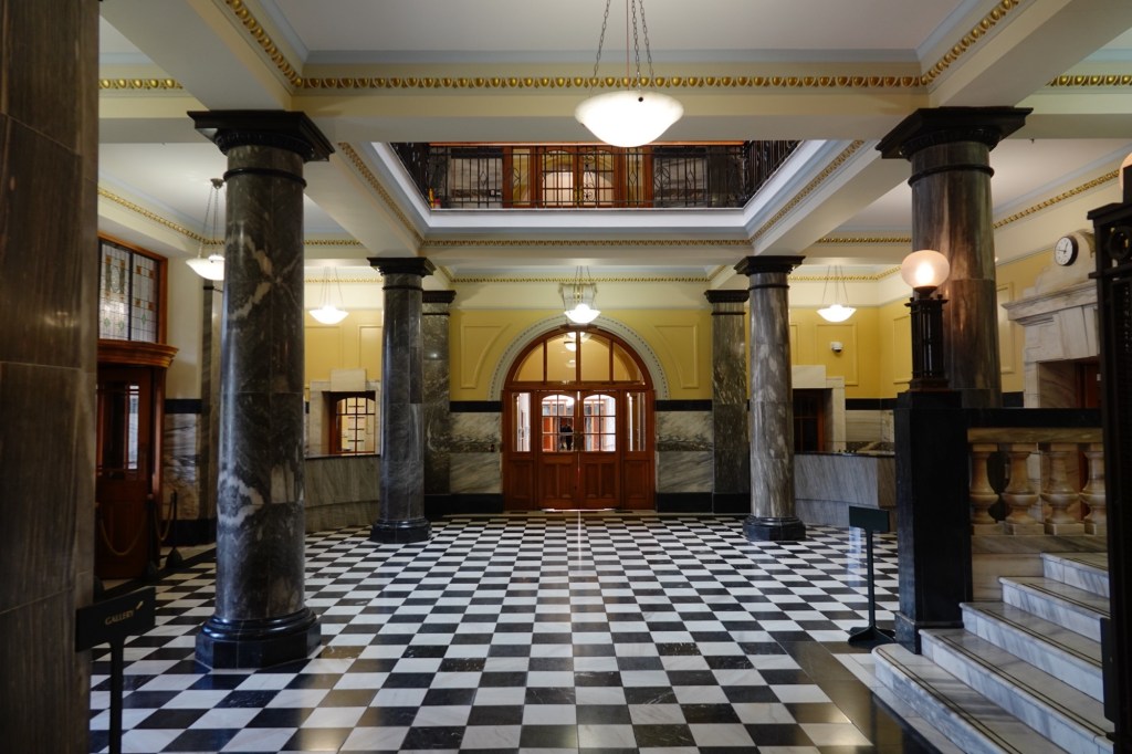 Off to the side of that hallway is the Grand Hall, originally the member’s lounge containing, among other things, billiards tables – because what better way for parliamentarians to relax? It no longer has those tables, but has recently become rentable as an event space.