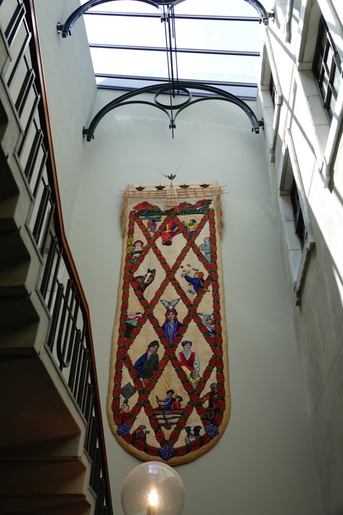 The main artwork here is called These are Matters of Pride, by Malcolm Harrison. The hanging panels represent the land, sea, and sky.