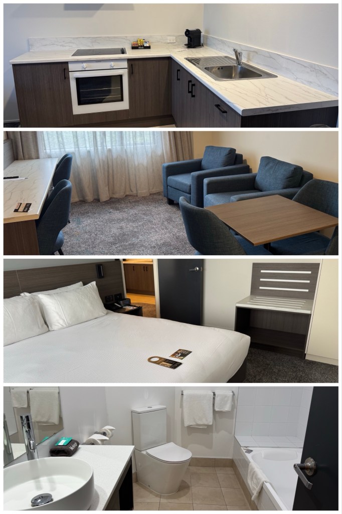 When we arrived, because we’re Expedia Platinum VIP members, we’d been upgraded to a one-bedroom apartment, with the best equipped kitchen we’ve seen to date. It’s almost a shame we’re only here overnight, although as a long-stay location being at the airport would not be ideal.