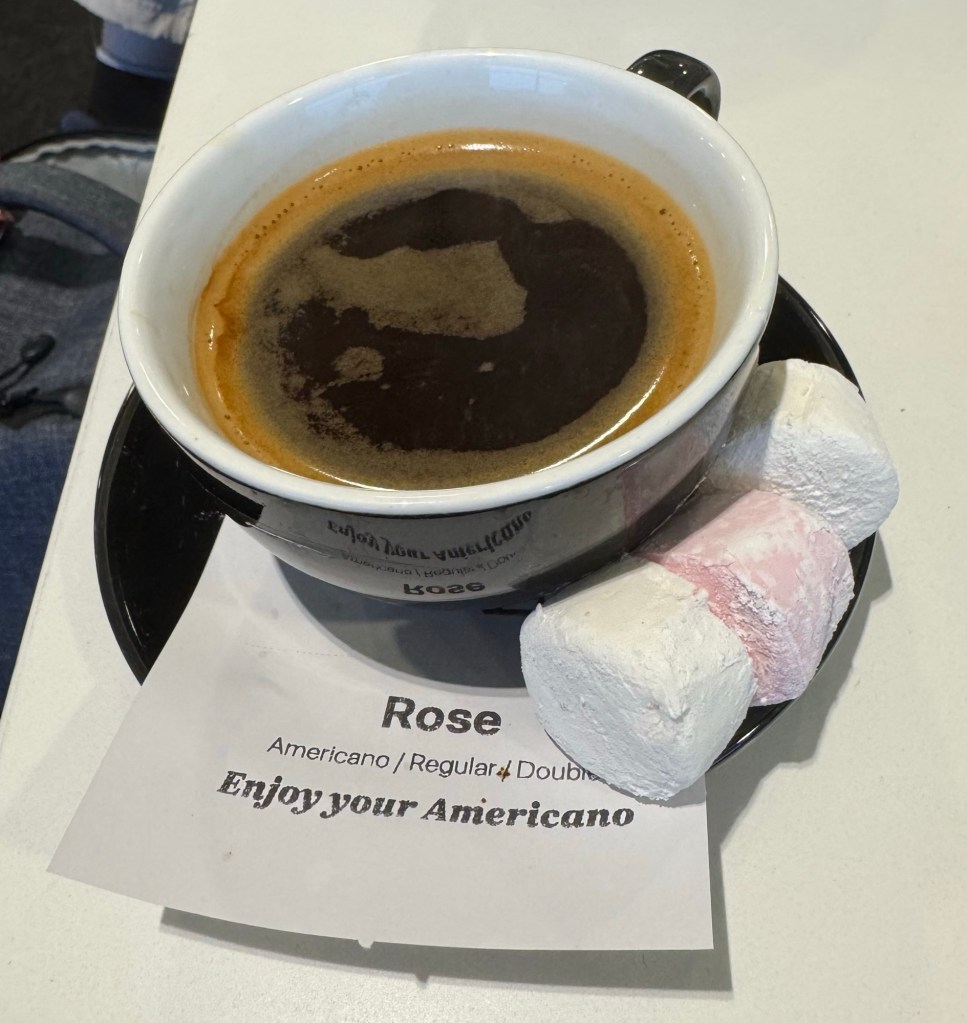 The coffee ordering system was particularly efficient. There’s a tablet at the barista station to allow each person to choose their preferred drink and customize it. when the barista has made it, the receipt included the name you entered when ordering. Of course, being New Zealand, there are marshmallows offered with the coffee.