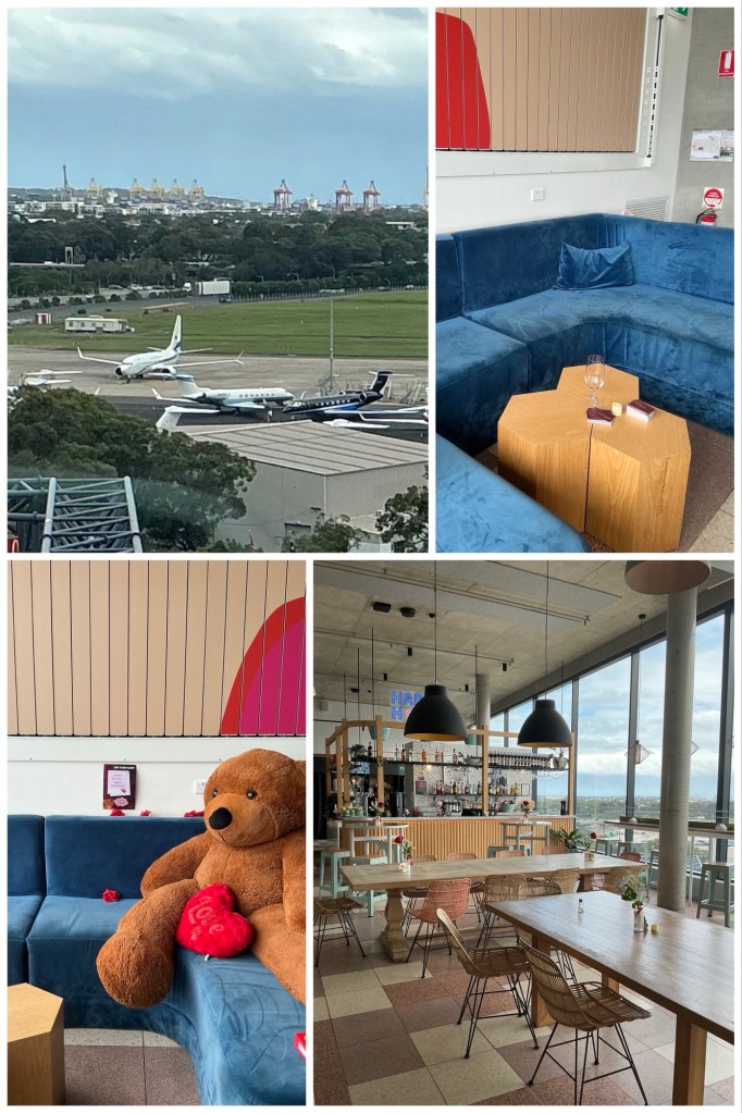 There’s no real place to sit in the room, so it’s lucky that there’s a top floor lounge (currently decorated for Valentines Day) with comfy chairs overlooking the airport.