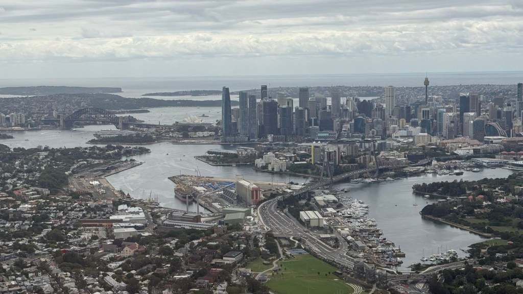 We left Auckland at 10:30 a.m. and arrived in Sydney 3-1/2 hours later at noon, having gained back 2 of the 21 hours we lost on January’s flight.
