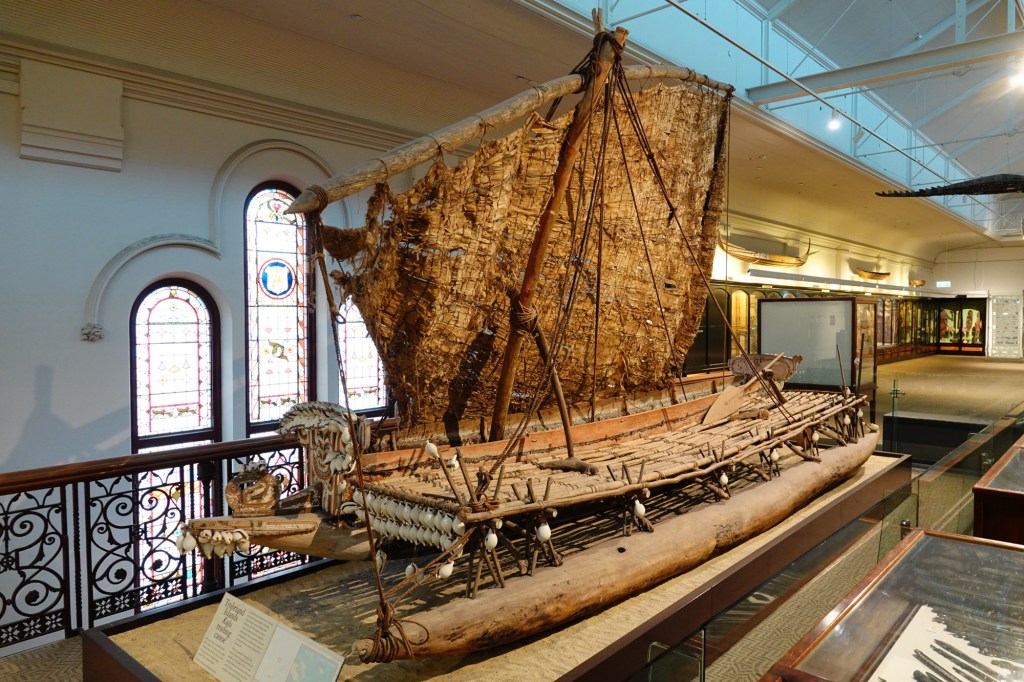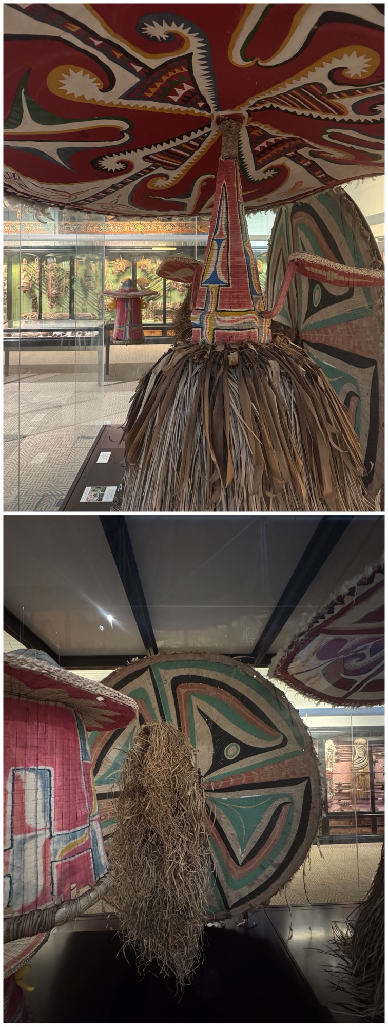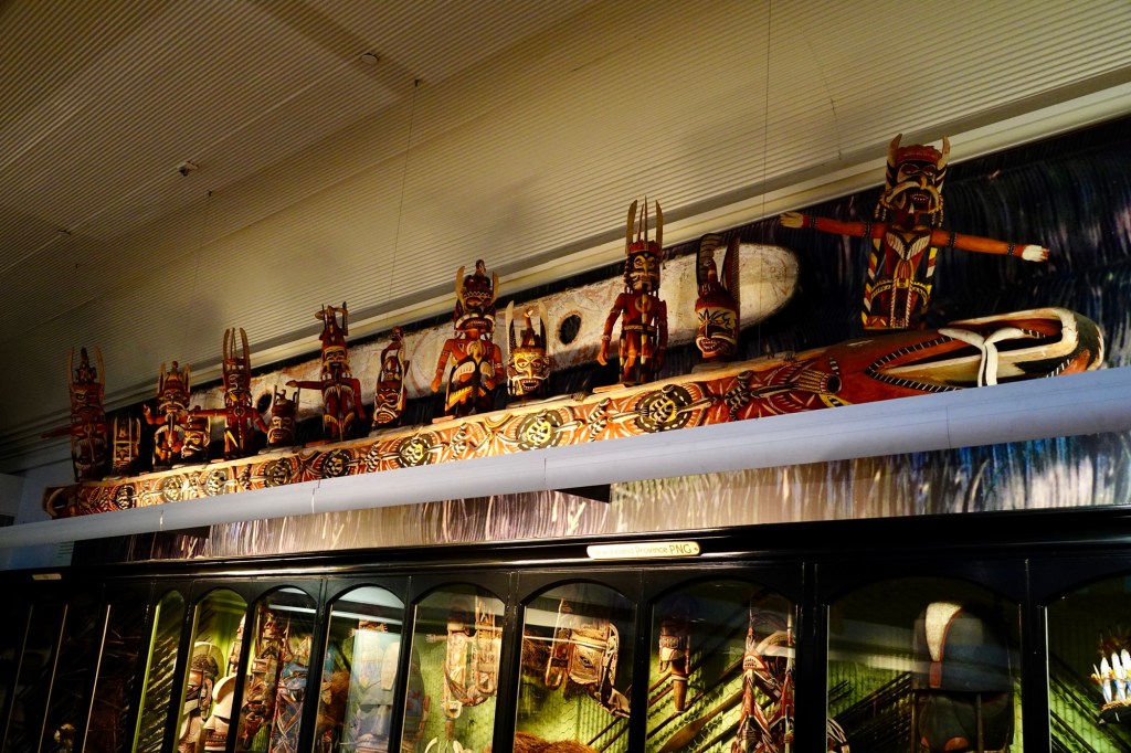 I know it’s a Tuesday, but why was there absolutely no one in the incredible Pacific Cultures galleries? Not one single person. The exhibits here were like nothing I’ve ever seen before, with artefacts from Papua New Guinea, Fiji, and the Solomon Islands: masks, canoes, spears, arrows, and more, all beautifully displayed and curated. The plaques describing the history of the area talked about when these islands were all connected to Australia, perhaps 60,000 years ago. They explained that for at least 80% of the time during which humans occupied the southwest Pacific, Australia and New Guinea were part of the single continent of SAHUL. Human settlement in this part of the world was most likely from Southeast Asia, where humans have been evolving for at least 1 million years.