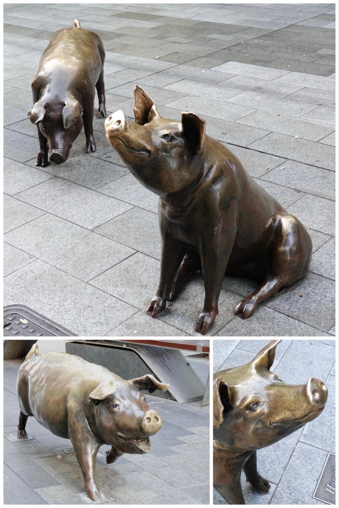 We were amused by the grouping of bronze pigs, a sculpture installation called “A Day Out”, by Marguerite Derricourt.