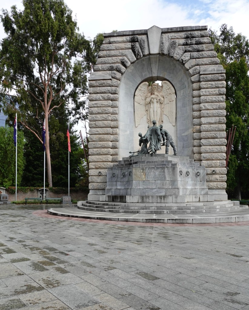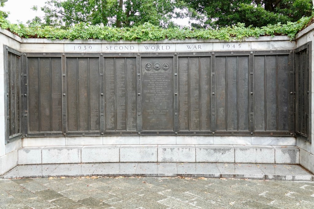 Our walk took us first to the huge South Australian National War Memorial, built in 1926 in commemoration of those who served in the First World War. Other than Canada‘s magnificent memorial at Vimy Ridge, this is perhaps one of the most beautiful we have seen. Not only are the sculptures on both the front and back incredibly moving, but inside the memorial is a chamber listing the names of those from Adelaide who were lost in the war.