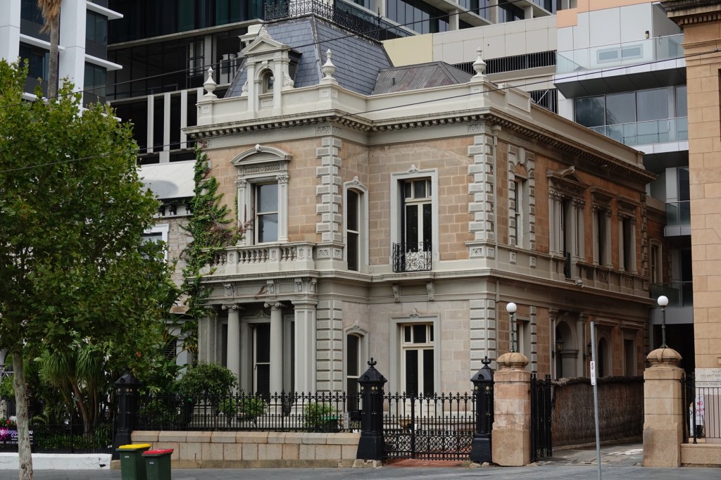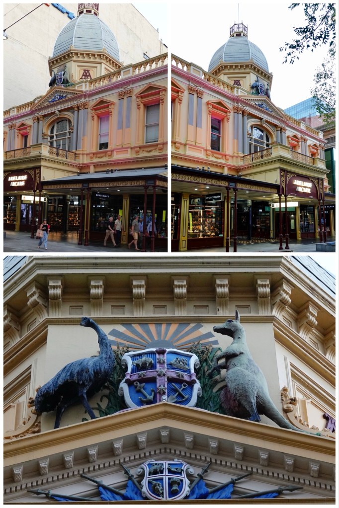 During our stroll, we were joined for a few minutes by a local gentleman who explained how much more beautiful the Mall had been before most of the wood and iron verandas had been removed. He pointed out the lone remaining one on the Italianate style Adelaide Arcade, dating to 1885.