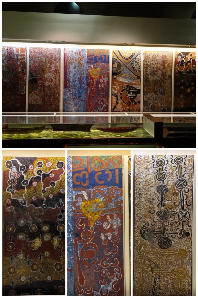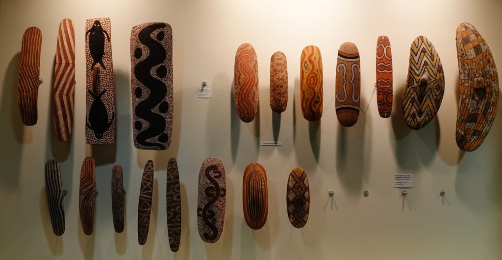 The Australian Aboriginal galleries were quite dark, intended to preserve the pigment on the various artifacts, but making it very difficult to get good photographs that showed how beautiful they really were.
