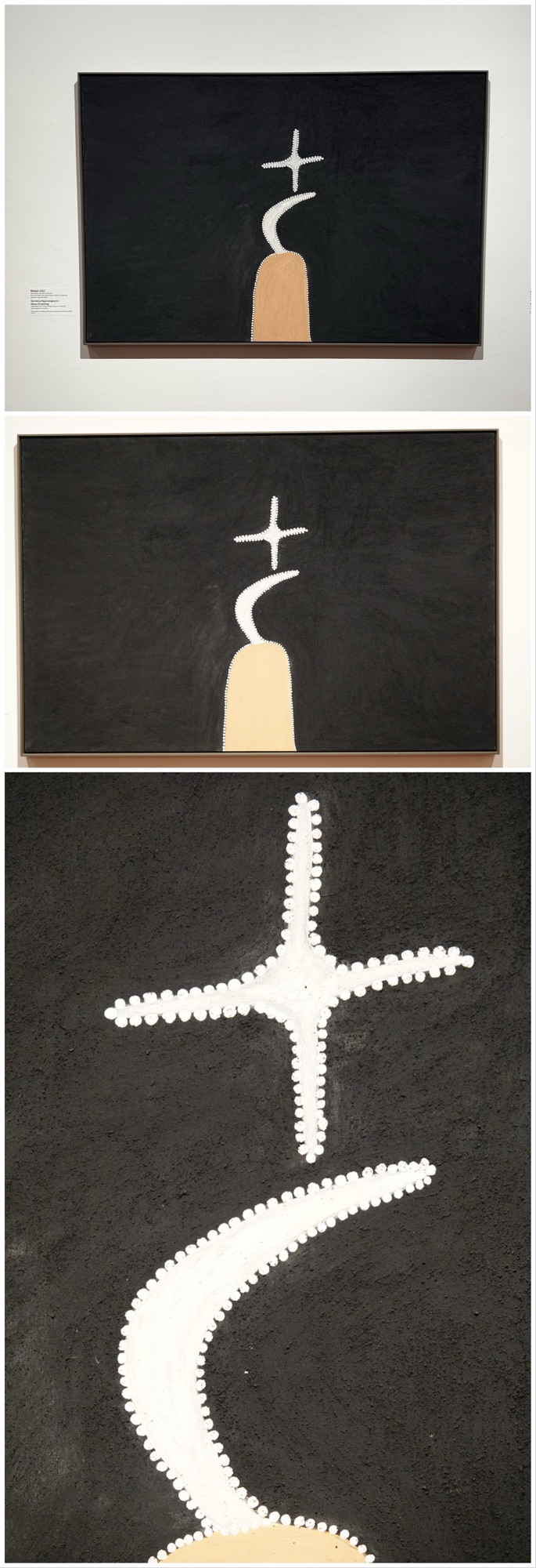 “Garnkiny Ngarrangkarni -Moon Dreaming” (2009), Warmun (Turkey Creek), Western Australia earth pigments on linen -by Mabel Juli, Gija people, Western Australia, born Five Mile, near Moola Boola Station, Kimberley, Western Australia 1933