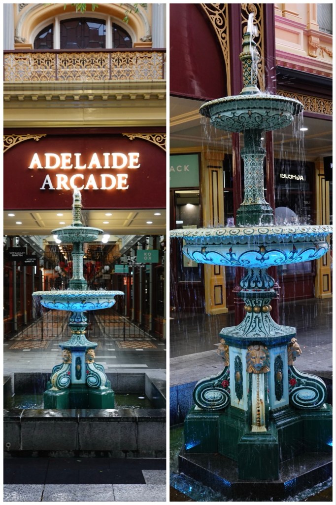 In front of the Adelaide Arcade is an ornate cast iron fountain in Victorian colours.