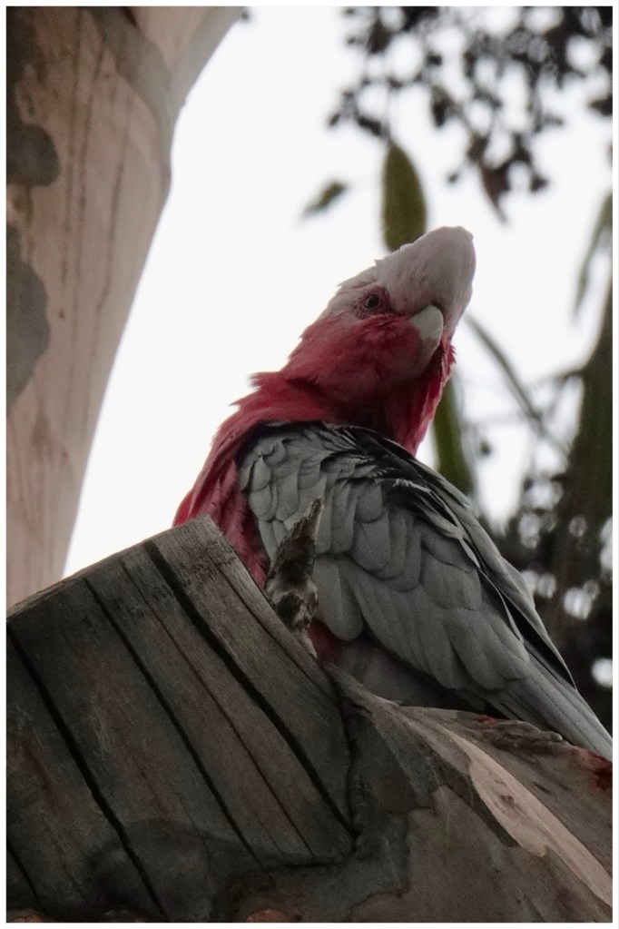 In a eucalyptus tree near the memorial, Ted managed to capture some great photos of a Galah (rose-breasted cockatoo).