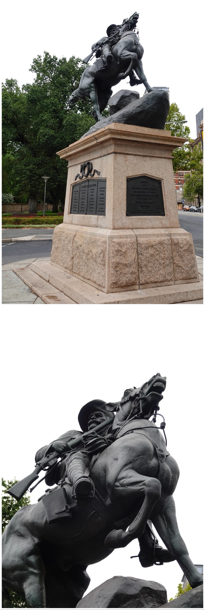 The memorial’s south eastern face represents the “Angel of Duty’ holding an upright sword and calling young people to war and sacrifice.
