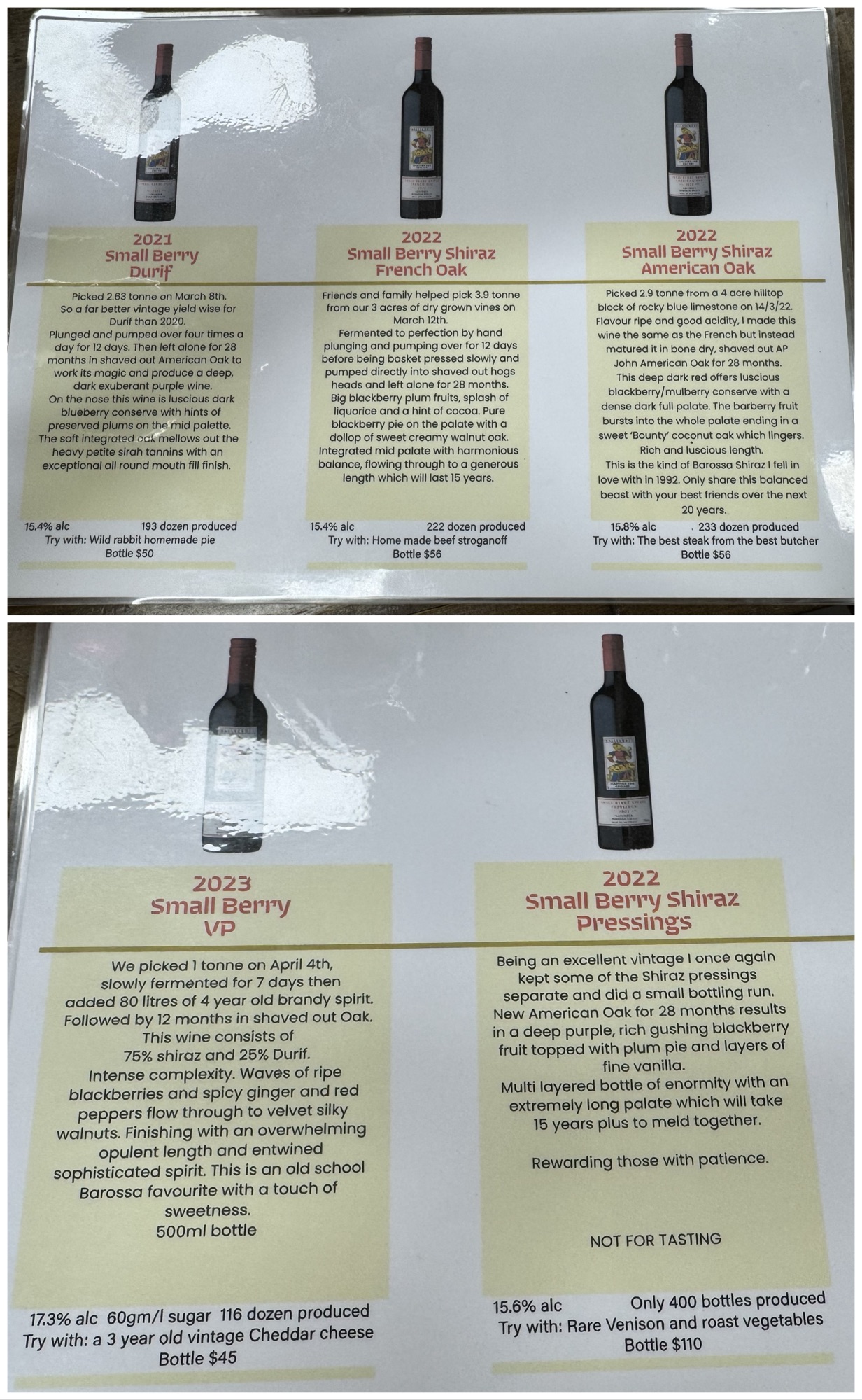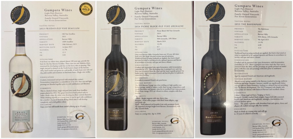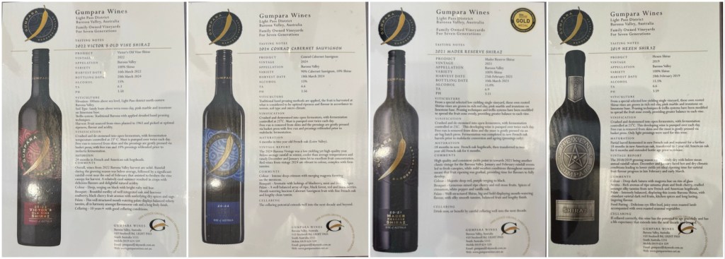 This was the only cellar at which the wines were not decanted before serving, the exception being the corked bottle. Gumpara wines are 700 micron filtered, so do not need decanting.