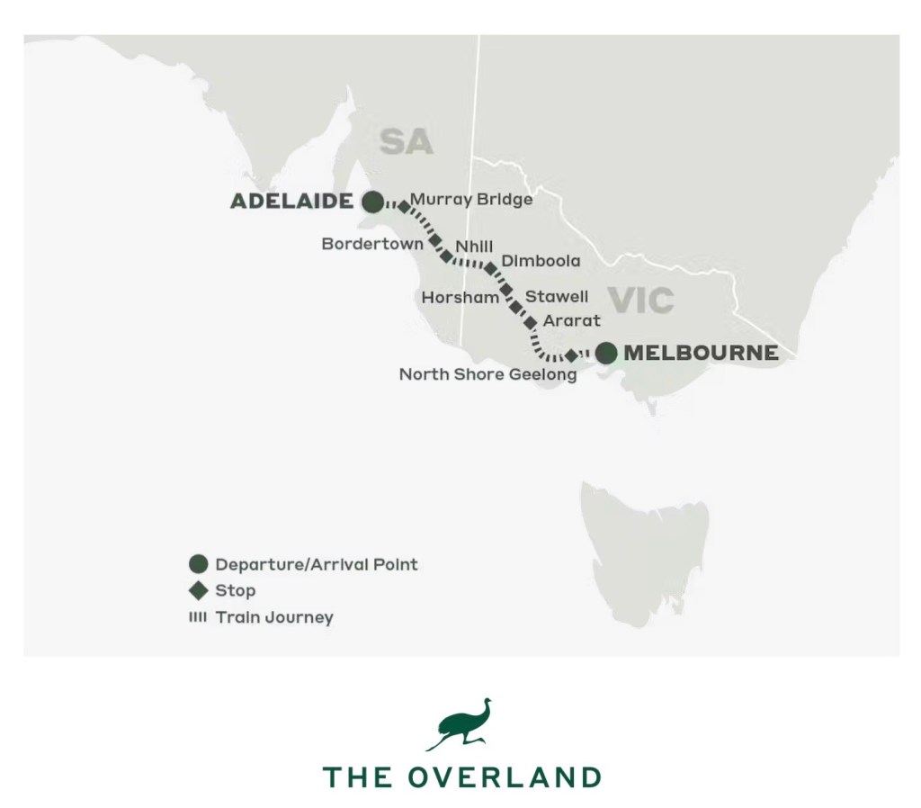 When we booked this train, I was drawn in by the description on the Journey Beyond website: “The Overland was Australia’s first inter-capital passenger train. This grand lady has been servicing guests from Adelaide, Melbourne, and the regional towns in between for over 135 years, as she makes her way between the vibrant capital cities of South Australia and Victoria. The much-loved daylight journey runs twice weekly in each direction at a relaxed pace, encouraging guests to sit back and enjoy the evolving countryside views.”