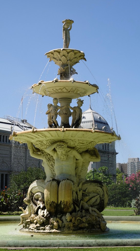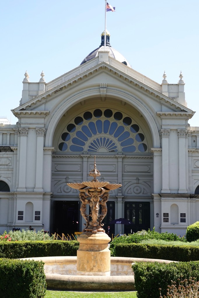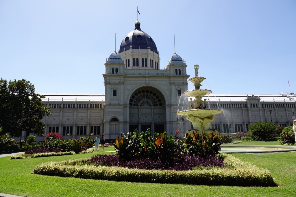 The park is also home to the Royal Exhibition Building, erected for the Melbourne International Exhibition of 1880-81. As a ‘Palace of Industry’, it displayed the technologies and achievements of the mechanised age. Huge temporary halls housed exhibits of the latest products from more than thirty nations. Pianos, typewriters, lawnmowers, electric lights, carriages and decorative homewares were all on display. Public taste in Melbourne was changed for ever. The 1880 International Exhibition was the greatest show the city had ever seen, and attracted over one million visitors. A second, even larger world fair, the Centennial International Exhibition, was staged here in 1888. (Wording taken from the plaque on the grounds)
