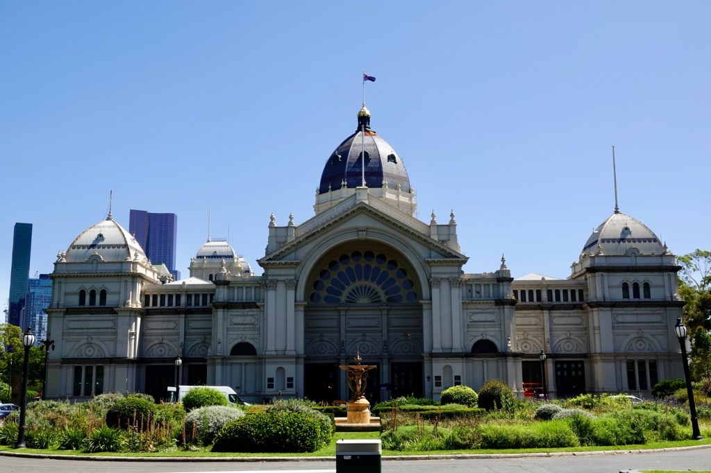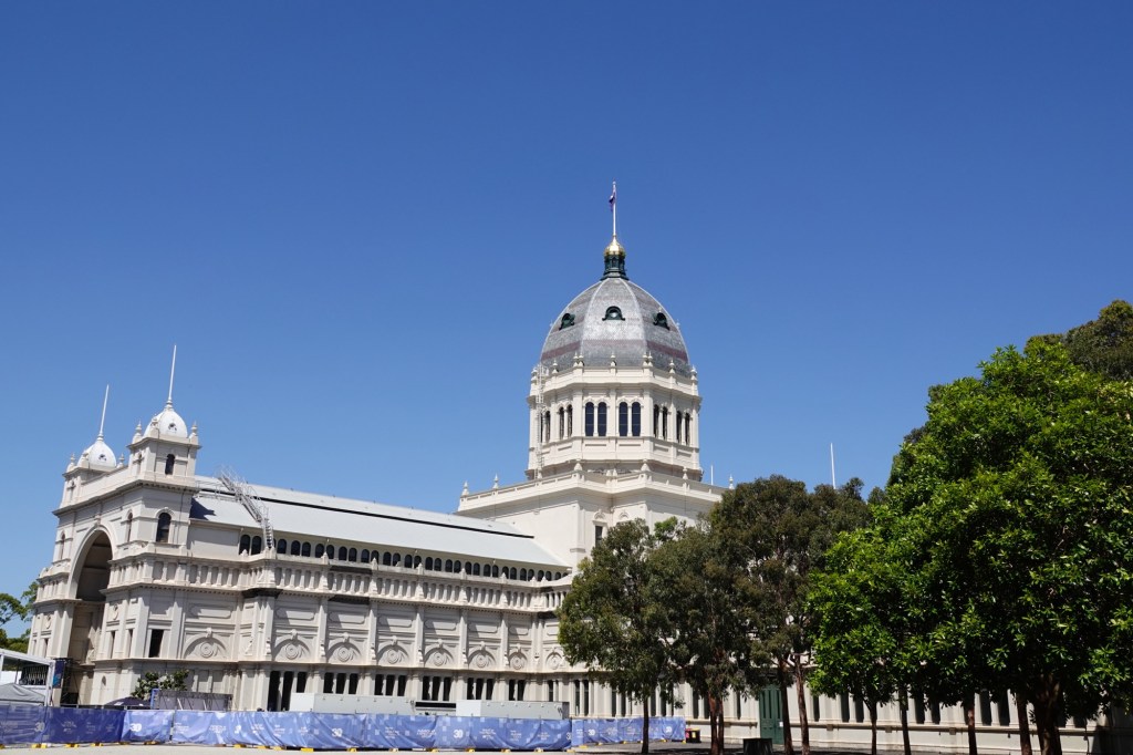 The Royal Exhibition Building is the only surviving ‘Palace of Industry’ from a nineteenth-century world fair on its original site. It is still in use as an exhibition venue, and was hosting the Melbourne Fashion Fair, which was why interior tours were not available.