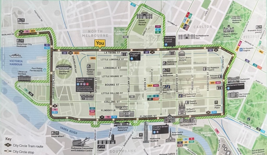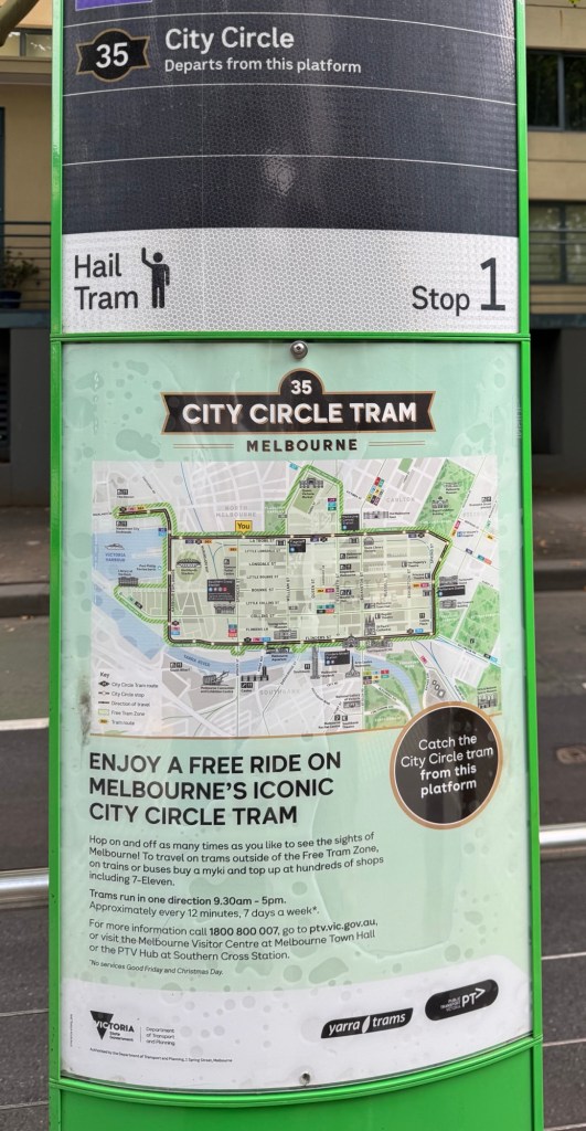 Like Adelaide, where we didn’t end up using it, Melbourne has a free “circle tram” that runs around the city centre and touches on virtually all of the most popular sites for visitors.