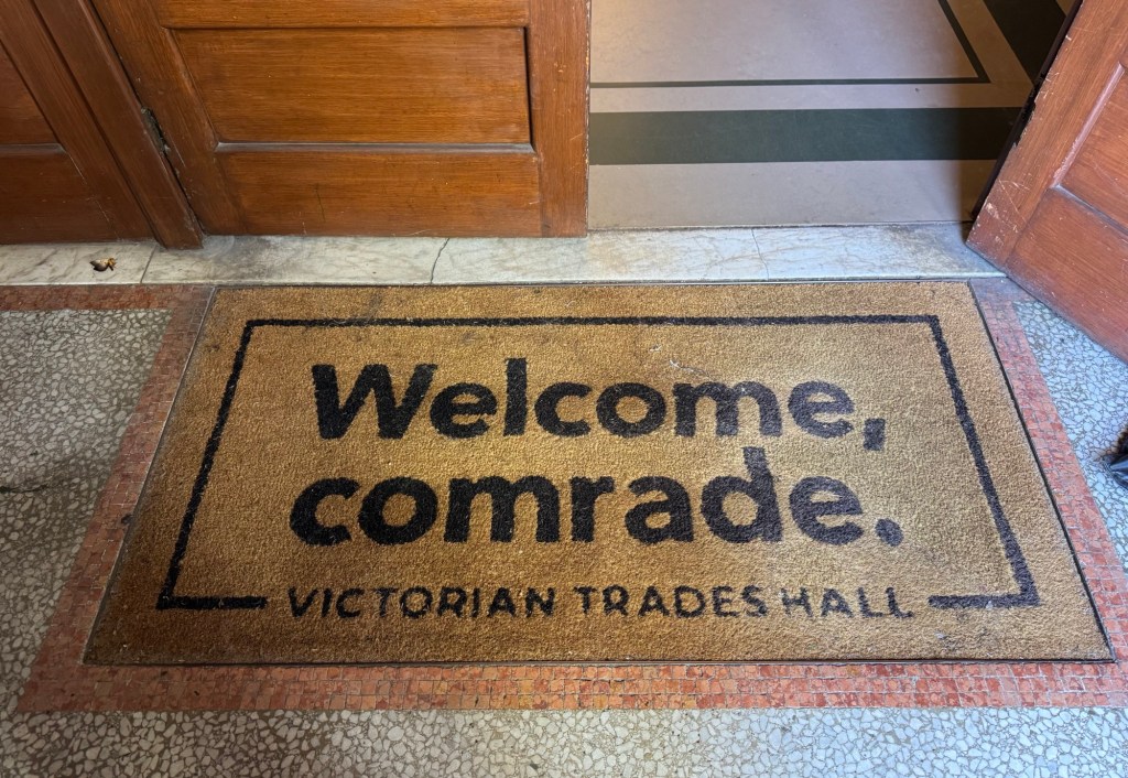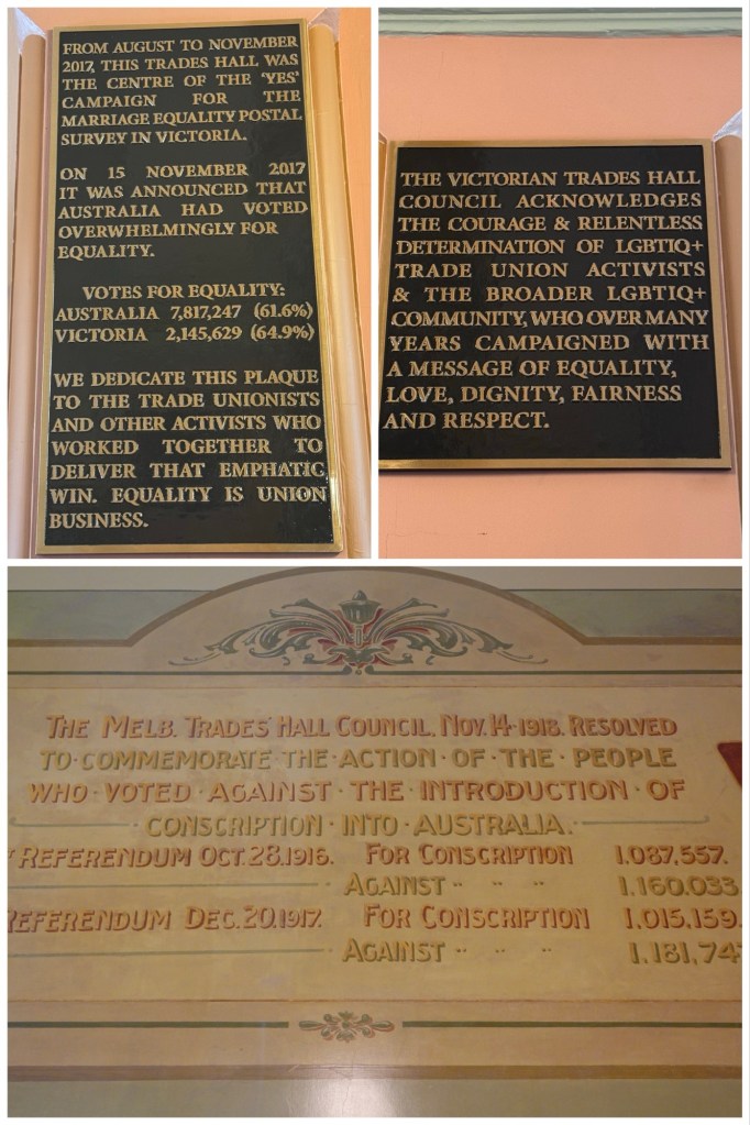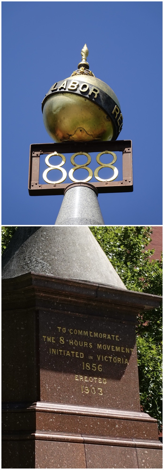 Kitty corner from the monument was an imposing stone building that was not represented on the tram map. Upon closer inspection, because a building that large absolutely needed to be checked out, we discovered that it was the Victorian Trades Building, and intimately connected to the 8-8-8 concept. It was – and still is – home to offices representing some of Victoria State’s trade unions. My dad, who had been a union steward for Canadian Auto Workers Local 707 for many years, would have been very impressed with this trade union building.