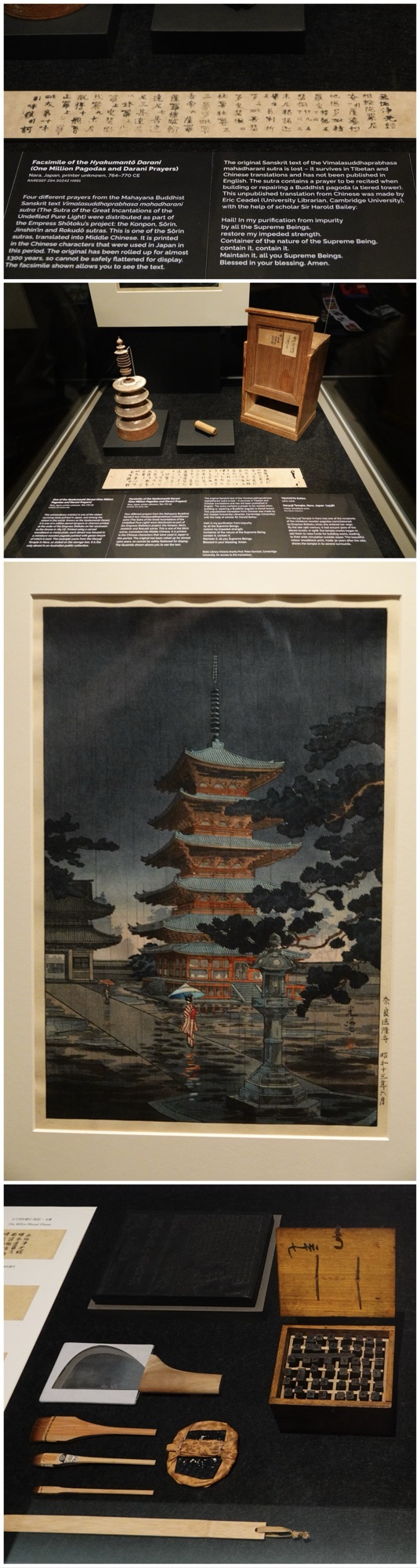 In the fourth floor gallery around the Reading Room was an exhibit about books and printing. We overheard one of the library docents talking about the art of printing using individual blocks in Japan, predating Gutenberg’s moveable type press by over 600 years.