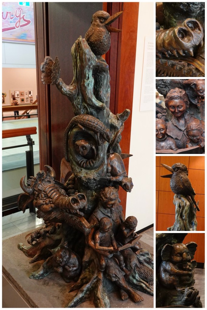 Inside the library, in addition to an art gallery wing, which we didn’t tour, were more literature-related sculptures, most relating to Australian author’s unfamiliar to us.