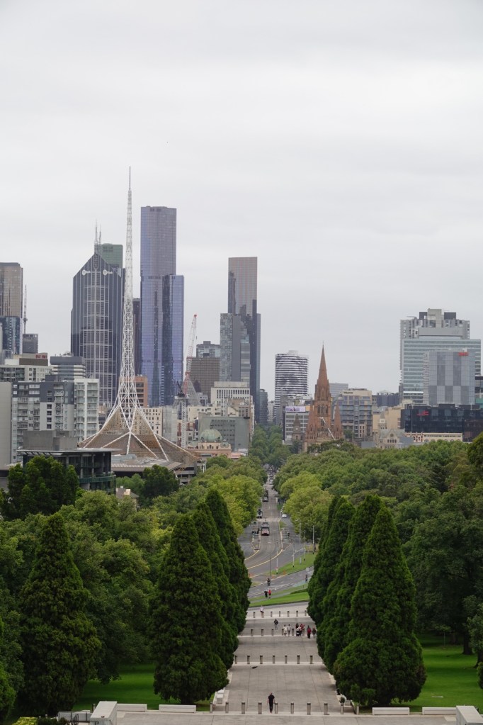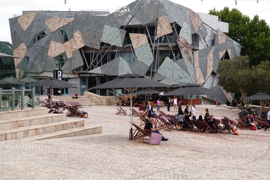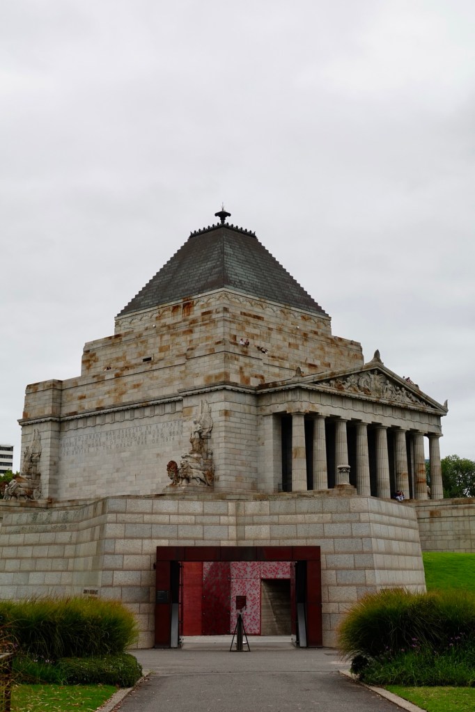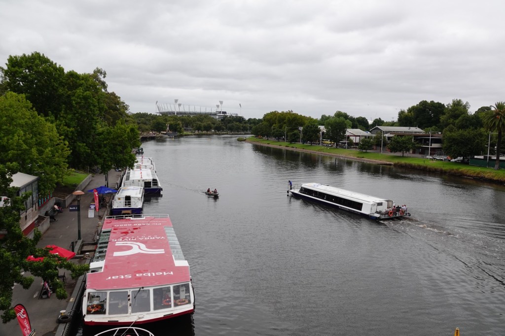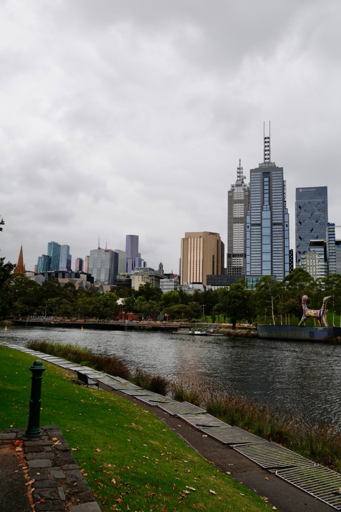 We climbed onto the tram today headed for Federal Square and a walk along the Yarra River that would also get us to the Royal Botanical Gardens, the Shrine of Remembrance, and the National Gallery of Victoria – all of which are free to tour. It was a bit of much needed budget relief; other than a cake and coffee break midday, our other meals were in our apartment.