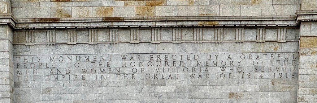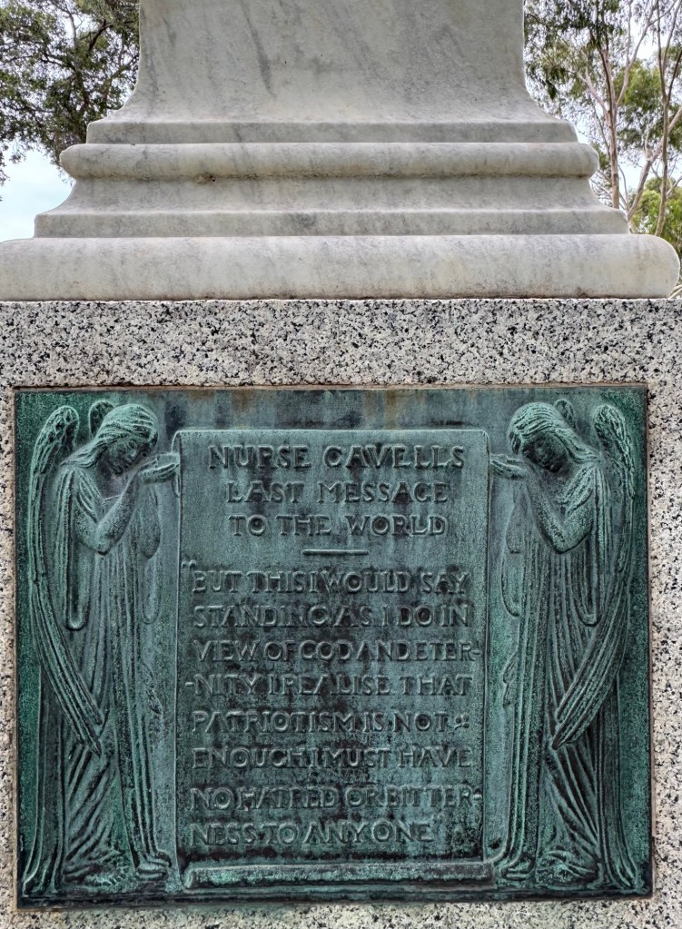 The Boer war memorial, which is somewhat triangular. The three inscriptions at the top underneath AD 1903: “Lest We Forget” , “Honour the Brave”, and “King and Empire”.