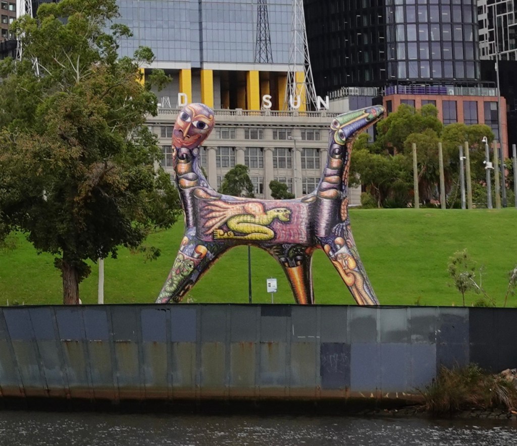 On the opposite bank of the river, “Angel” by Australian artist Deborah Halpern.