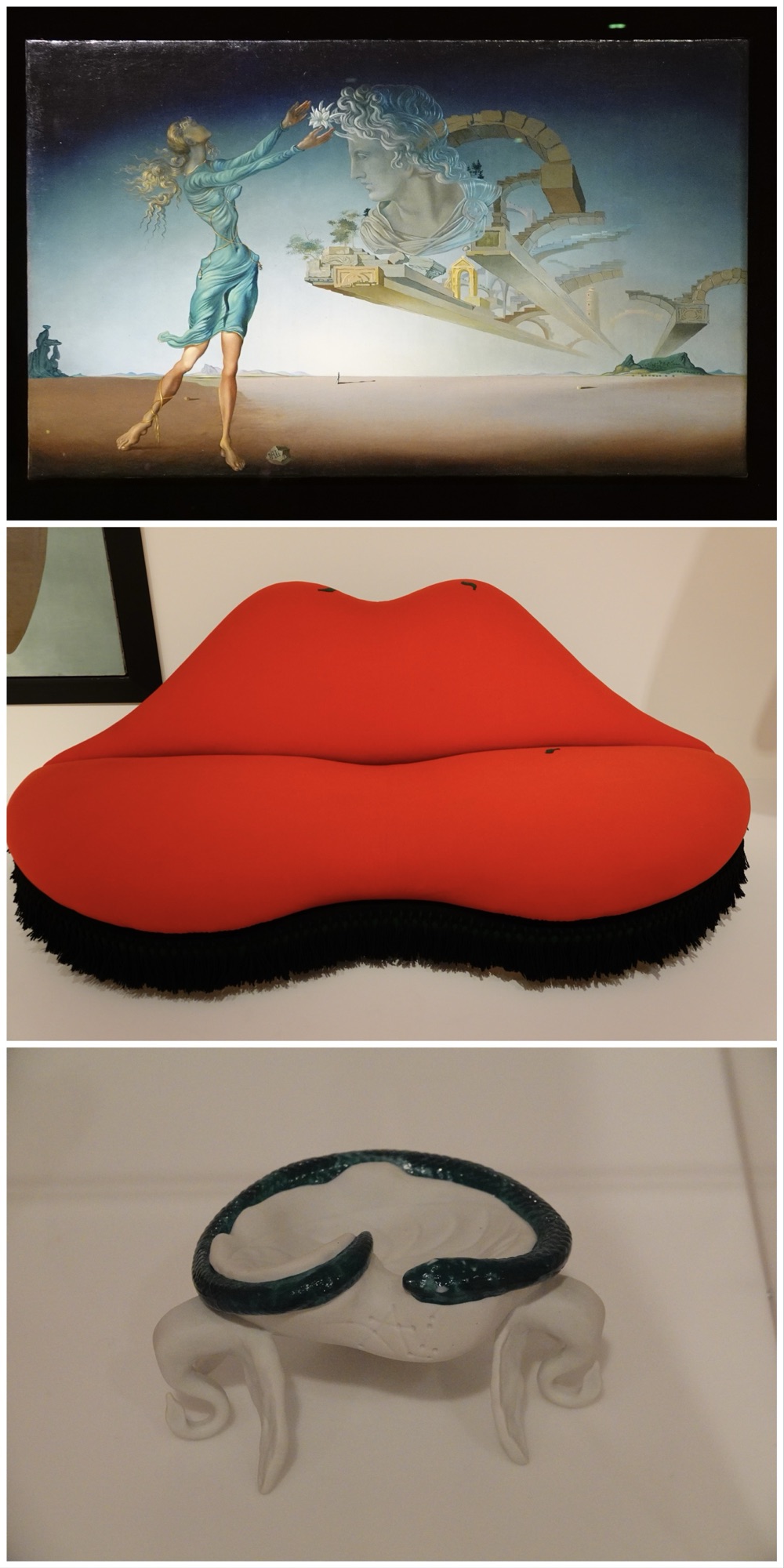 Works by Salvador Dali always make me smile. Top: Trilogy of the desert: Mirage (1946). Centre: Mae West lips sofa (1937/38). Bottom: what happens when an airline (in this case Air India) asks Salvador Dali to design their ashtrays (1967).