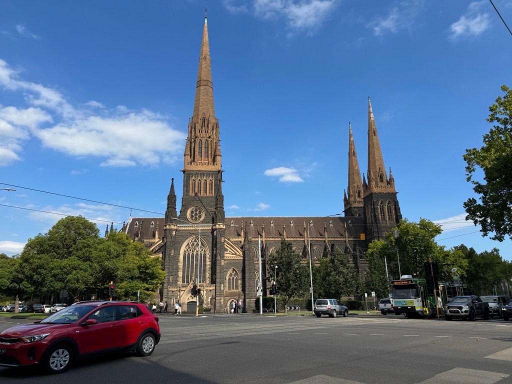 Nonetheless, it doesn’t take Ted long to take photos as we walk, and there were lots of interesting things on the route. Barbara had given us some perspective over our morning coffee on why Melbourne has so many magnificent buildings: they were almost all built during the 1850s at the height of the gold rush, when money was no object. We saw proof of that firsthand a little later in the day.