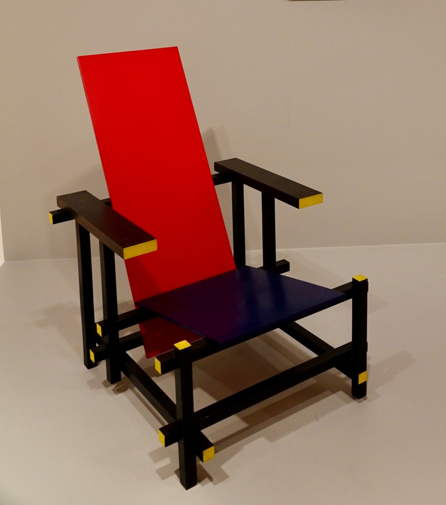 This chair in primary colours, designed in 1917 by Gerrit Rietveld of the
