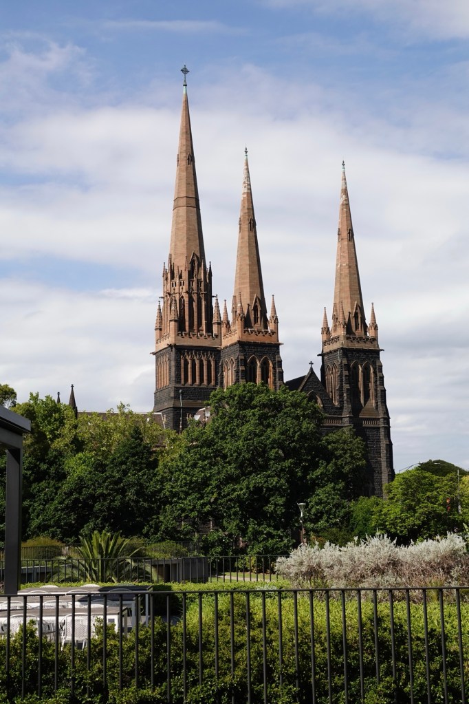 We stood on the rooftop balcony that was created in 2018 when a two storey addition of members’ offices was added. It gave us a lovely view of the spires of St. Patrick’s Cathedral. Victoria’s oldest Anglican church, a mosque, a German Lutheran church, and a synagogue are all in close proximity – not surprising in a city that boasts more than 75 nationalities and 110 languages!