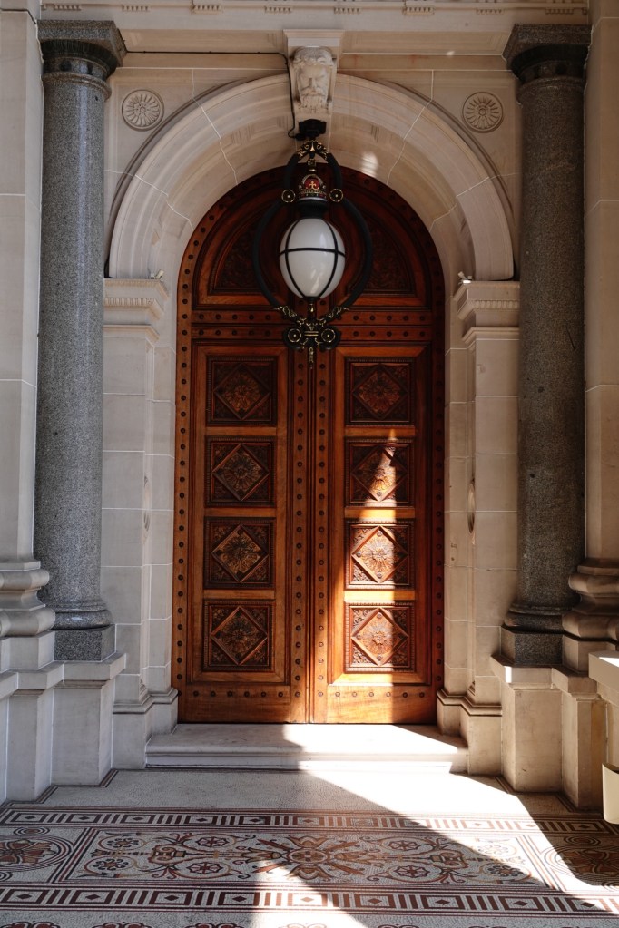 The Victoria Parliament Building (what in Canada we would call the Provincial Legislature, reserving “Parliament” for our national house) is right beside the Treasury. Because the staircase is directly on the street as opposed to separated by a swath of lawn, it seems even bigger than it is.