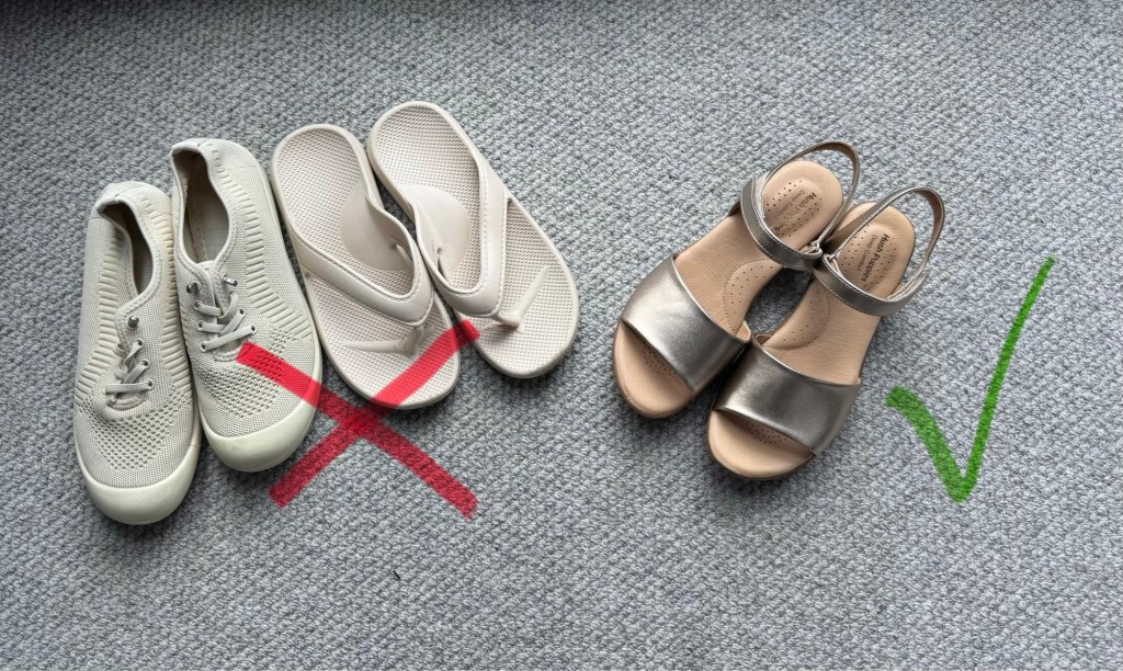 And today? Nothing planned beyond enjoying the view from our 18th floor windows, and a quick stroll around the Spencer Outlet Centre down the street, where Ted surprisingly found a New Zealand ice cream vendor in the food court (yes, we both had cones), and I – not surprisingly – found a great deal on shoes: exactly the kind of simultaneously flexible and pretty sandals that I’d been looking for.