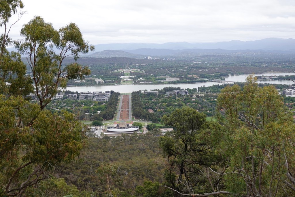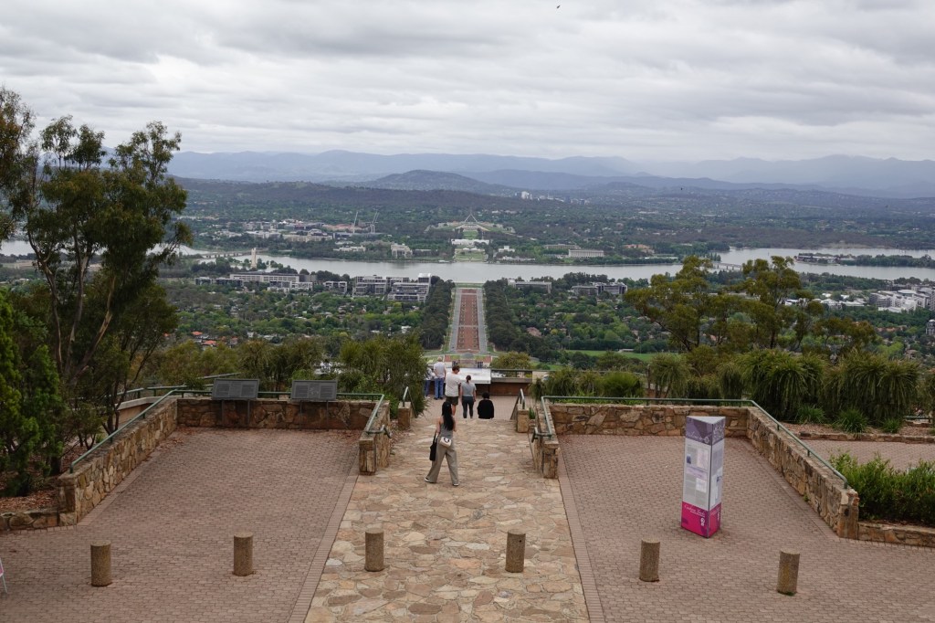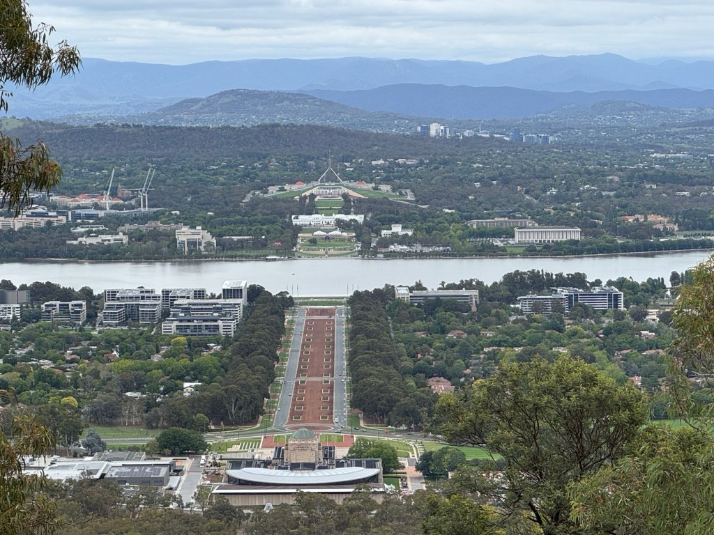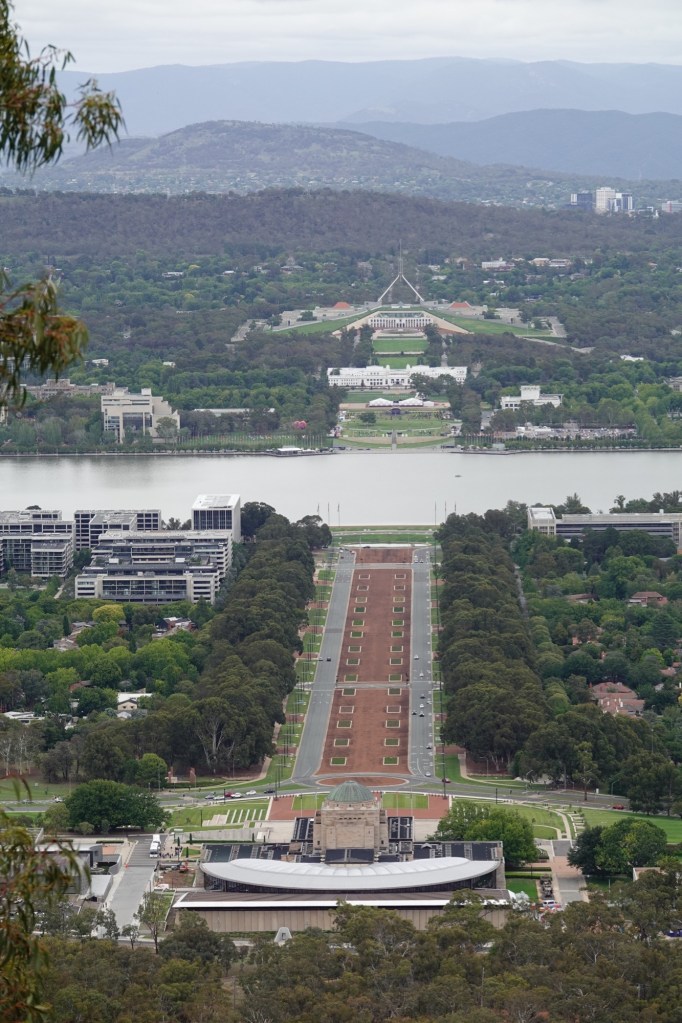 The direct line from the Australian War Memorial in the foreground to the national Parliament Building in the distance is by design. This is the “Capital Triangle”.