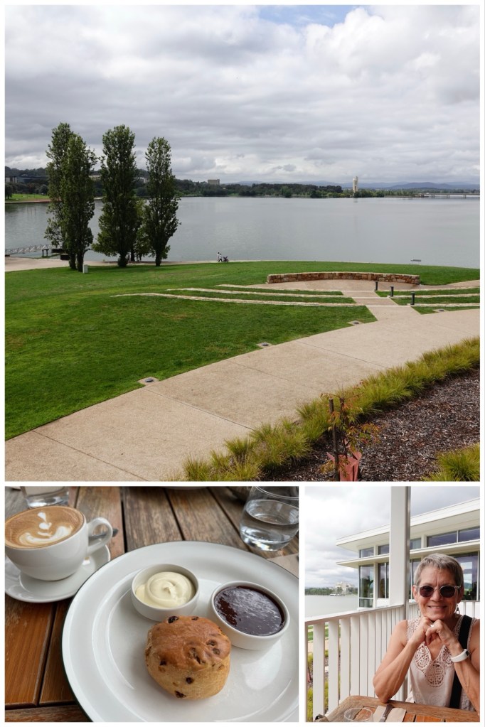 The National Capital Exhibition centre has both a café and a restaurant, named, respectively, Walter and Marion, after the couple who designed Canberra’s master city plan. We sat at an outdoor table in Walter, overlooking the Molonglo River and Lake Burley-Griffin, the manmade lake bearing Walter and Marion’s surname, and enjoyed flat whites and warm sultana scones.
