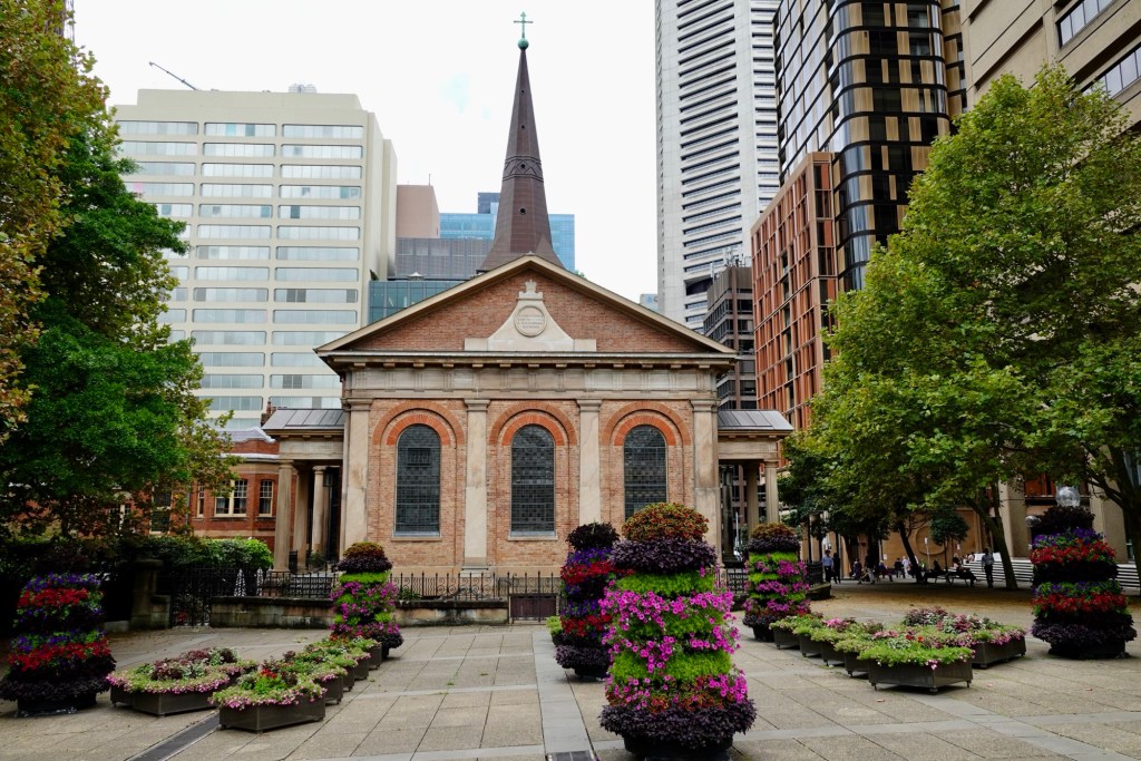 From the back of the church, in the parkette with Queen Victoria’s statue, the building looks quite different, and deceivingly small.