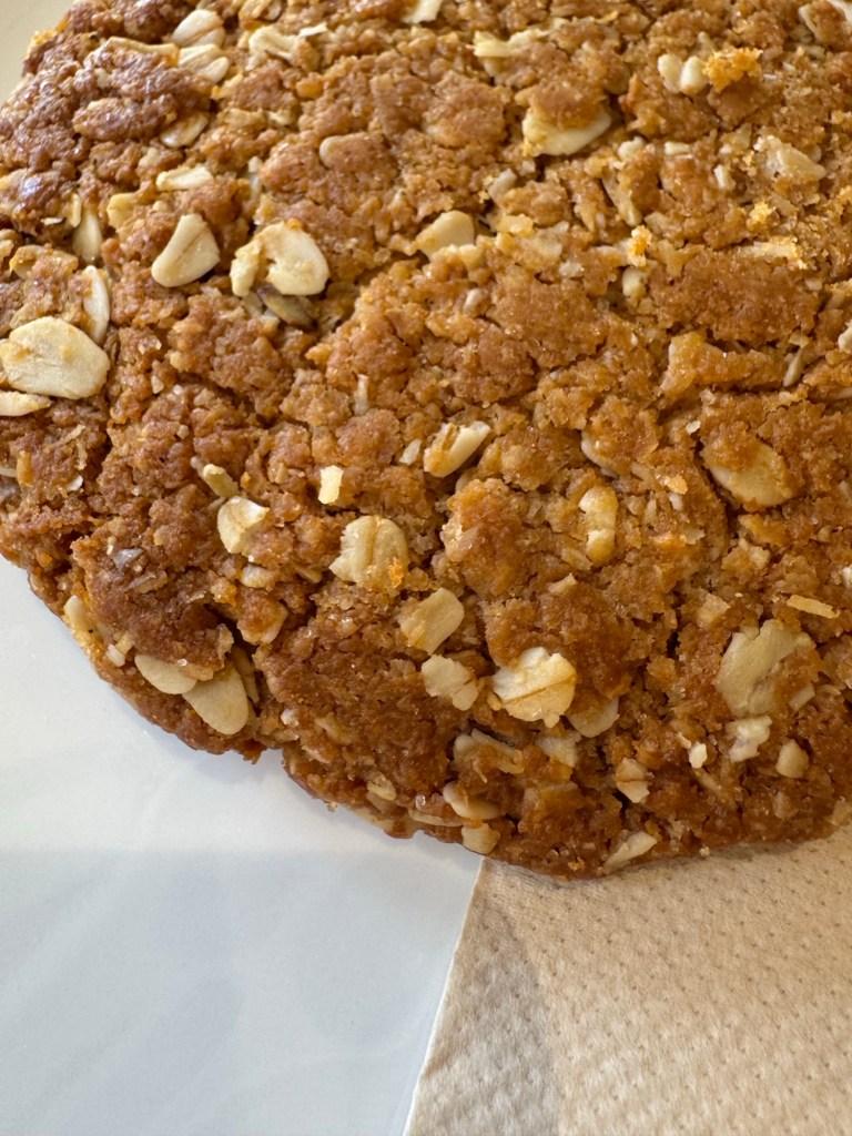 Anzac biscuits are traditional sweet biscuits from Australia and New Zealand, made from rolled oats, flour, sugar, butter, golden syrup, and baking soda, with desiccated coconut often added. They were created during World War I for soldiers of the Australian and New Zealand Army Corps (ANZAC) because their ingredients allowed them to survive long sea journeys without spoiling. The recipe traditionally omits eggs to ensure shelf stability, resulting in a biscuit that can be either crispy or chewy depending on the bake time. Ours included coconut and were crispy.