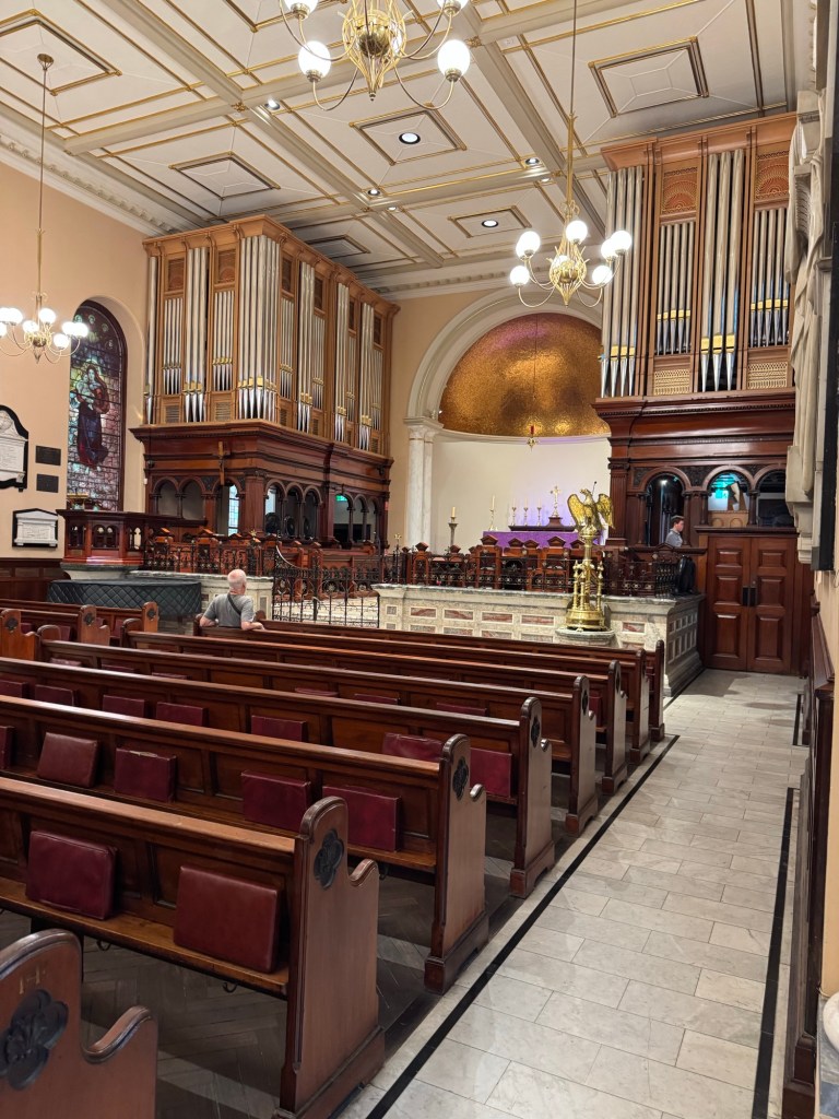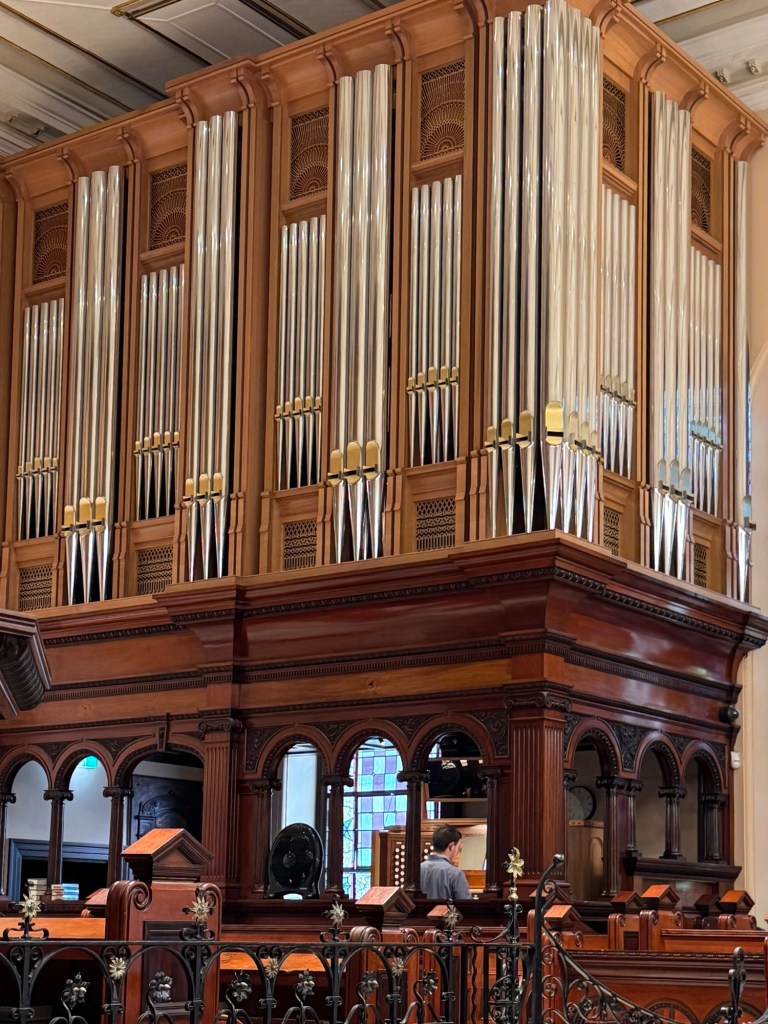 We had the extra bonus of listening to the organist practise. There’s nothing to compare with the acoustics of an empty church resonating with the music of a huge pipe organ.