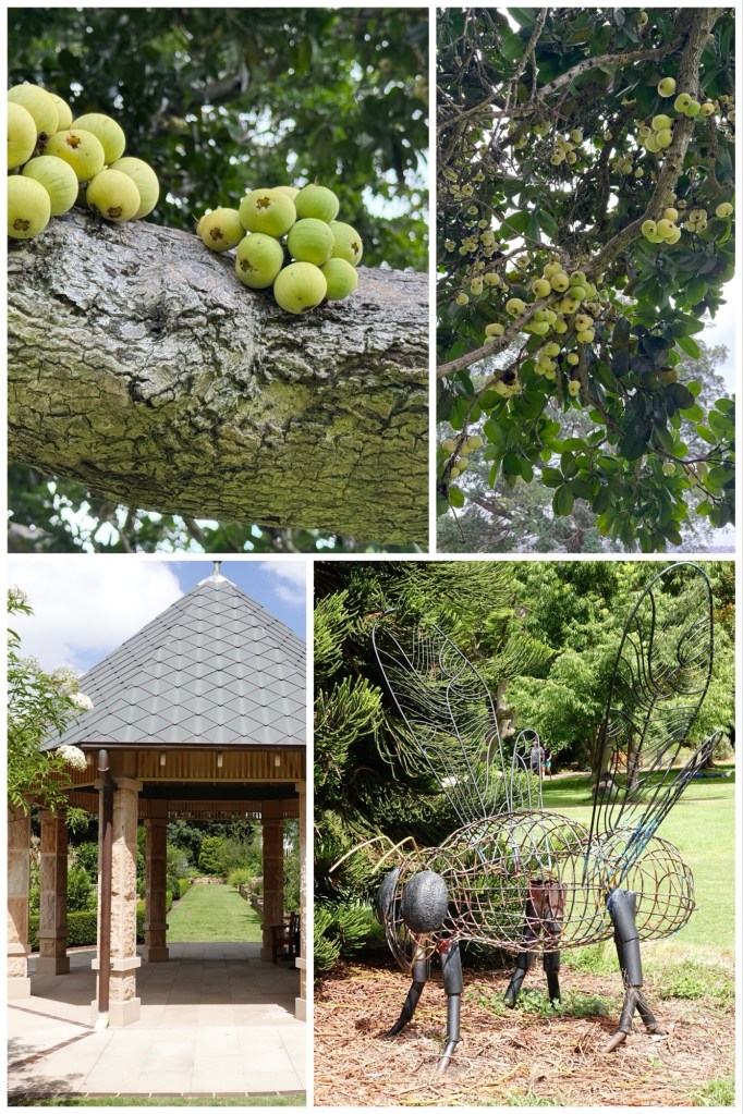 Bottom: one of many gazebos in the gardens, and a quirky wire bee sculpture.