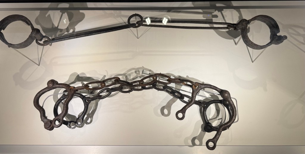 The third room had a mural depicting Sydney’s early penal colony, which was a place of labour but also of rehabilitation. The first convicts arrived here in 1788. Supervision was almost benevolent, if anything can be considered benevolent when it involves incarceration. Convicts were expected to work, unpaid, but generally not horribly mistreated.