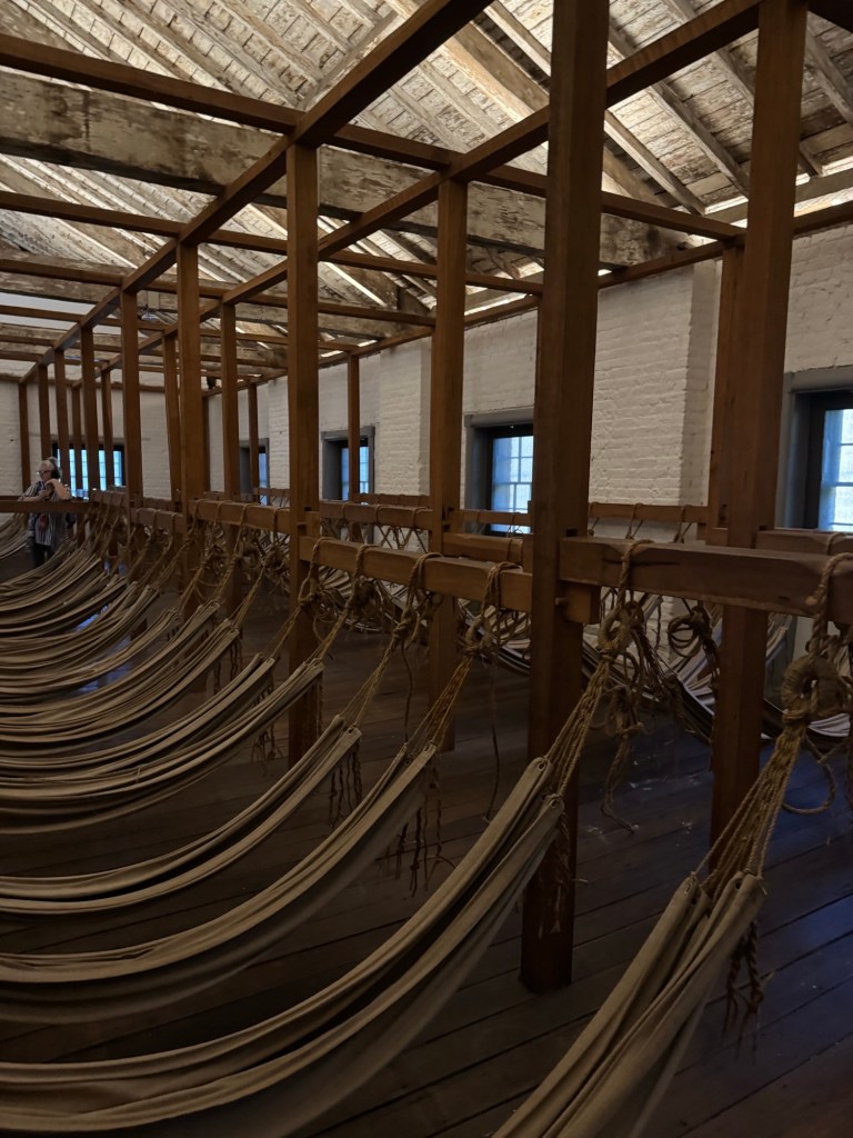 Here the narration switched to the voice of convict Joe Smith as I entered the “sleeping ward” . Seventy stinking, sweaty, coughing and hacking men slept in this room in tightly packed hammocks, in the company of rats and flies. Visitors can try the hammocks. I didn’t.
