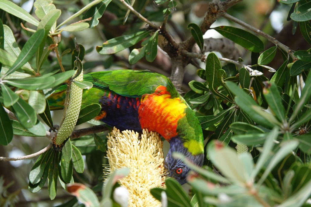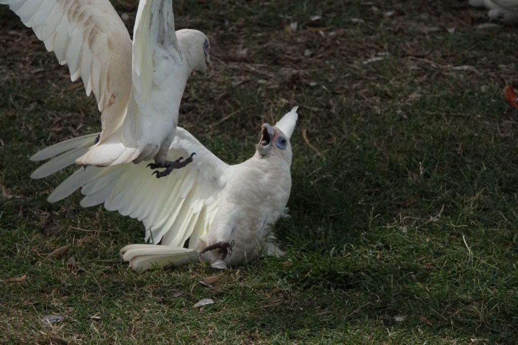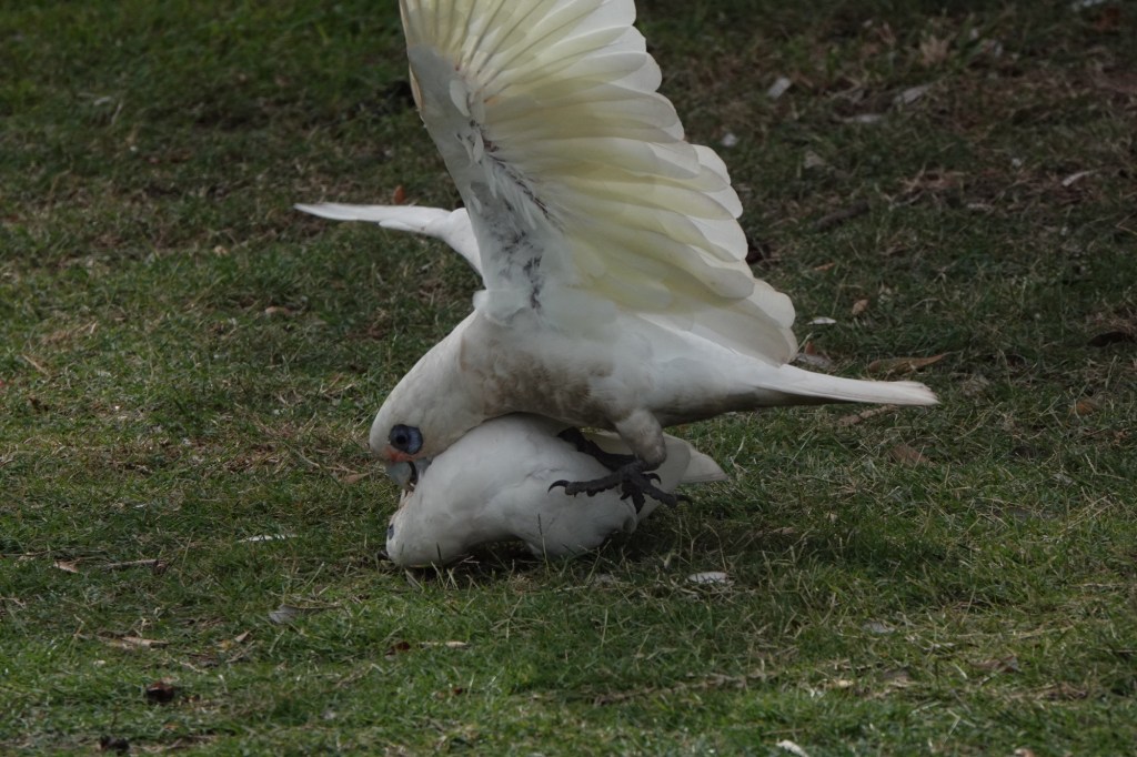 Beside the beach, hundreds of Little Corellas were putting on a very bizarre show. It’s possible it was mating rituals, although this is not the usual season. It’s also possible it was fighting, with some of the birds rolling over – feet up – in submission. Honestly, though, it seemed as if they’d all eaten fermented fruit, or were high on the cockatoo version of catnip.