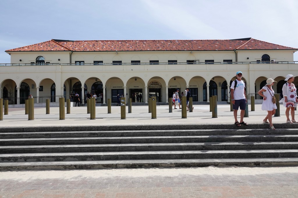 We took the T4 underground – two “layers” down and the first double-decker subway cars we’ve ever seen – to Bondi Junction, where we caught the #333 Bus to the stop that let us off at the the Bondi Pavilion.