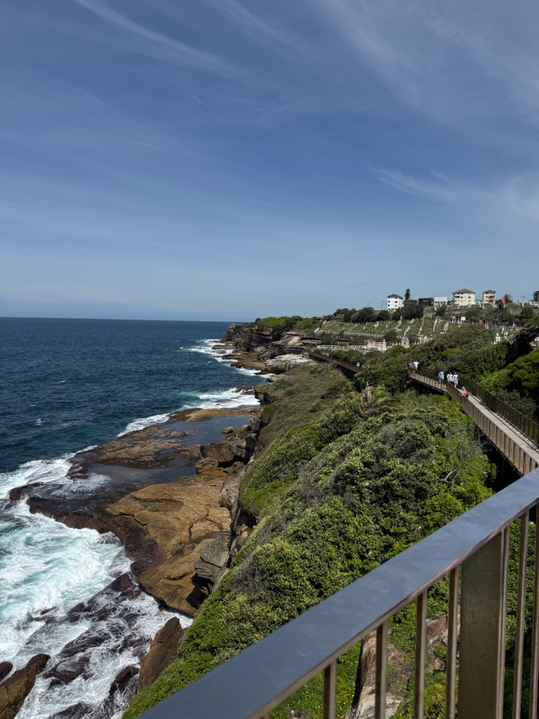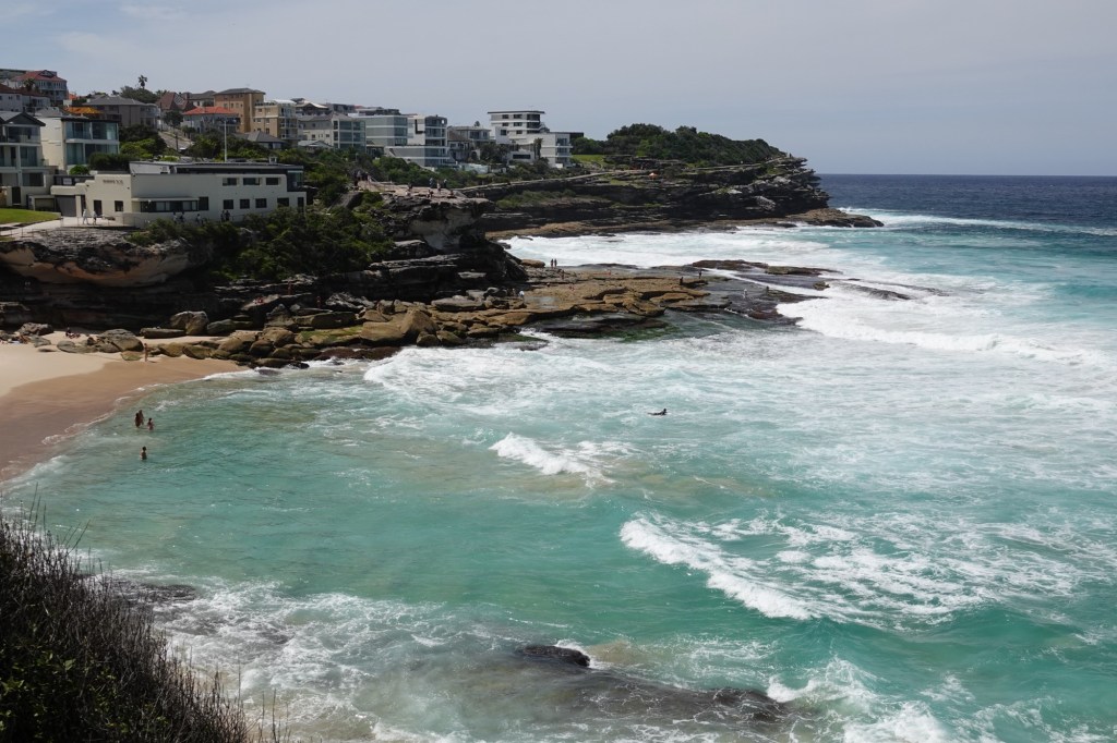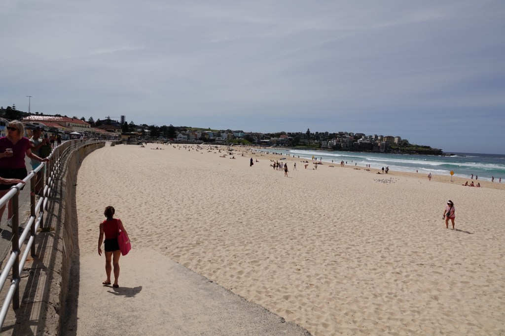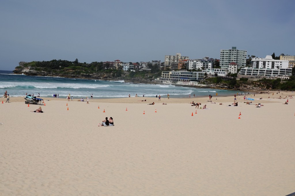Our walk certainly showed us why Bondi Beach is such a popular spot. The scenery, the sand, and the surf were all beautiful, as was our day: 28°C/82°F under bright sun with just a little breeze.