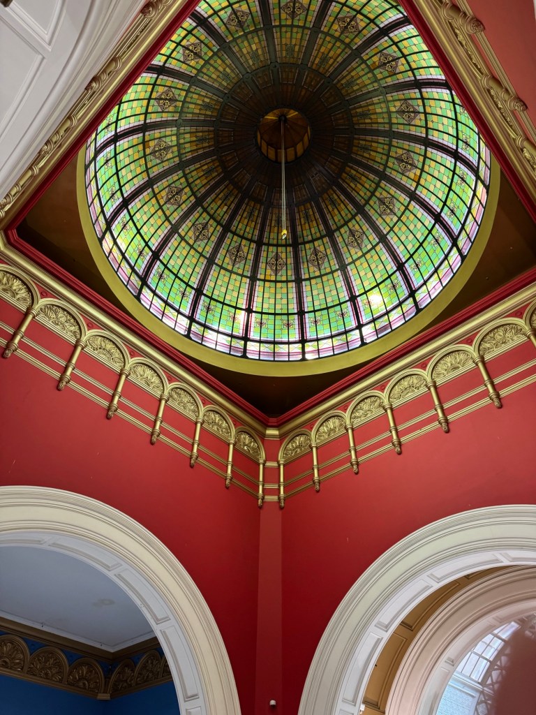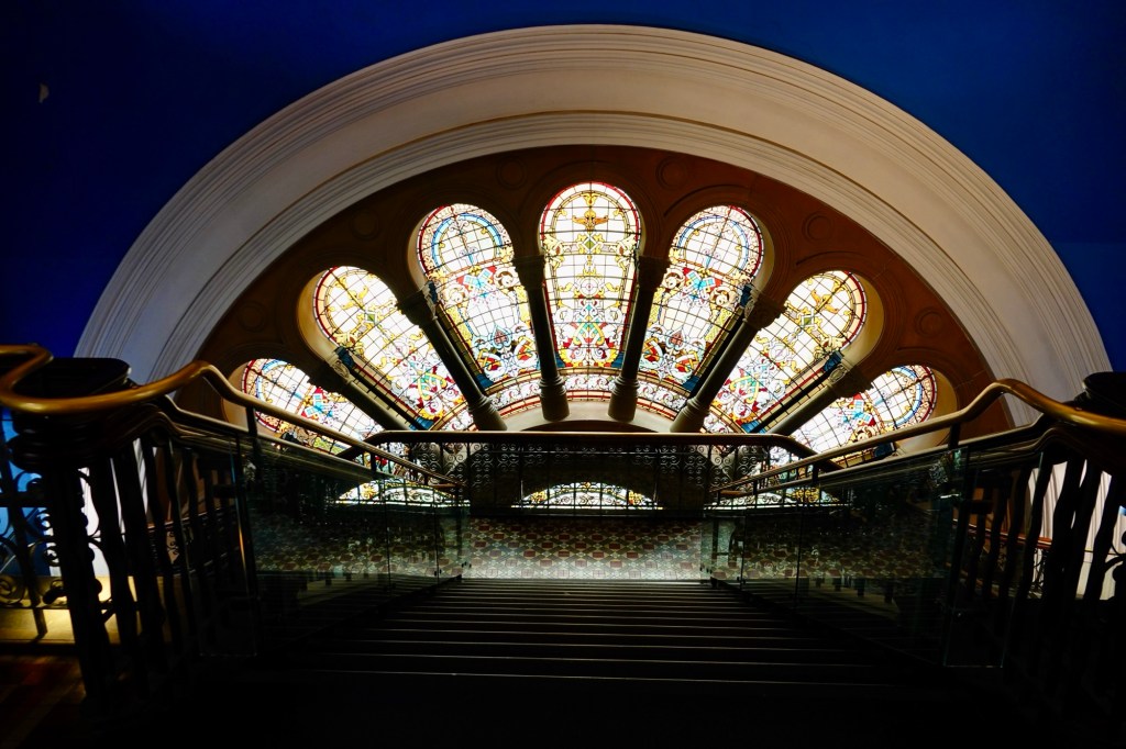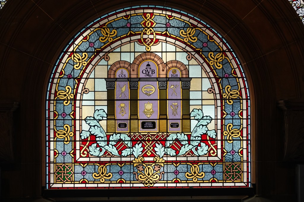 Heading into the centre of the QVB, we were wowed in all directions: huge stained glass windows on both sides, and a glass dome above.